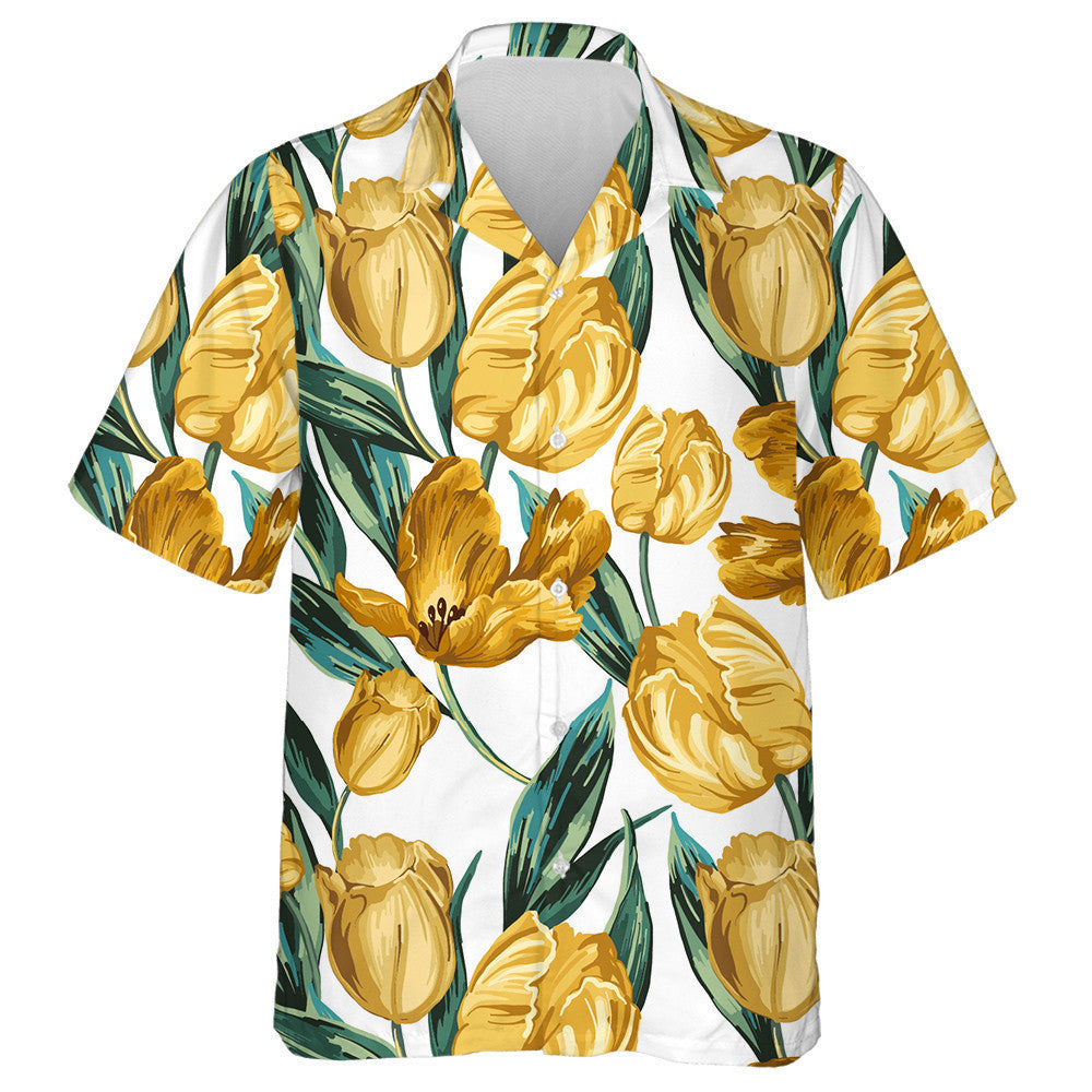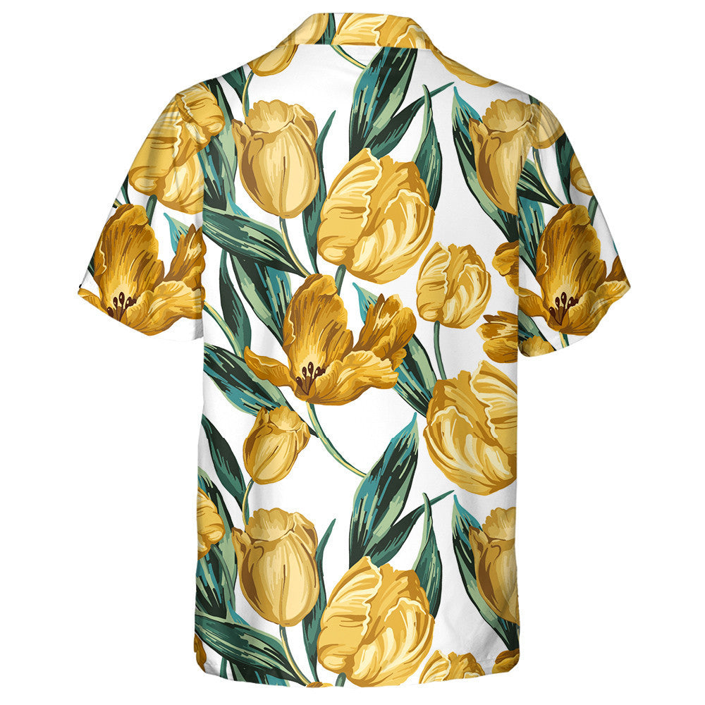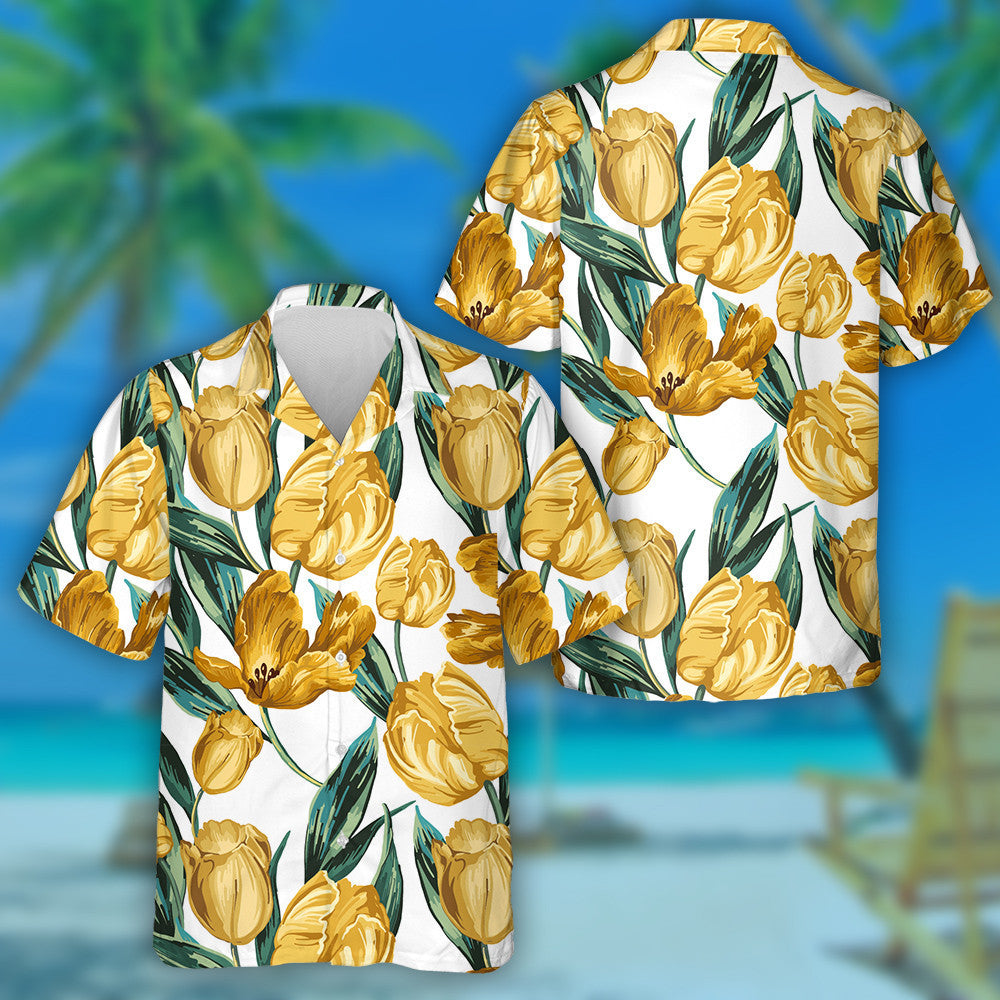 Tiúilipí Buí Uiscedhath Agus Duilleoga Glasa Dearadh Téamach Léine Haváí, Bronntanas Léine Haváís, Bronntanas Nollag
