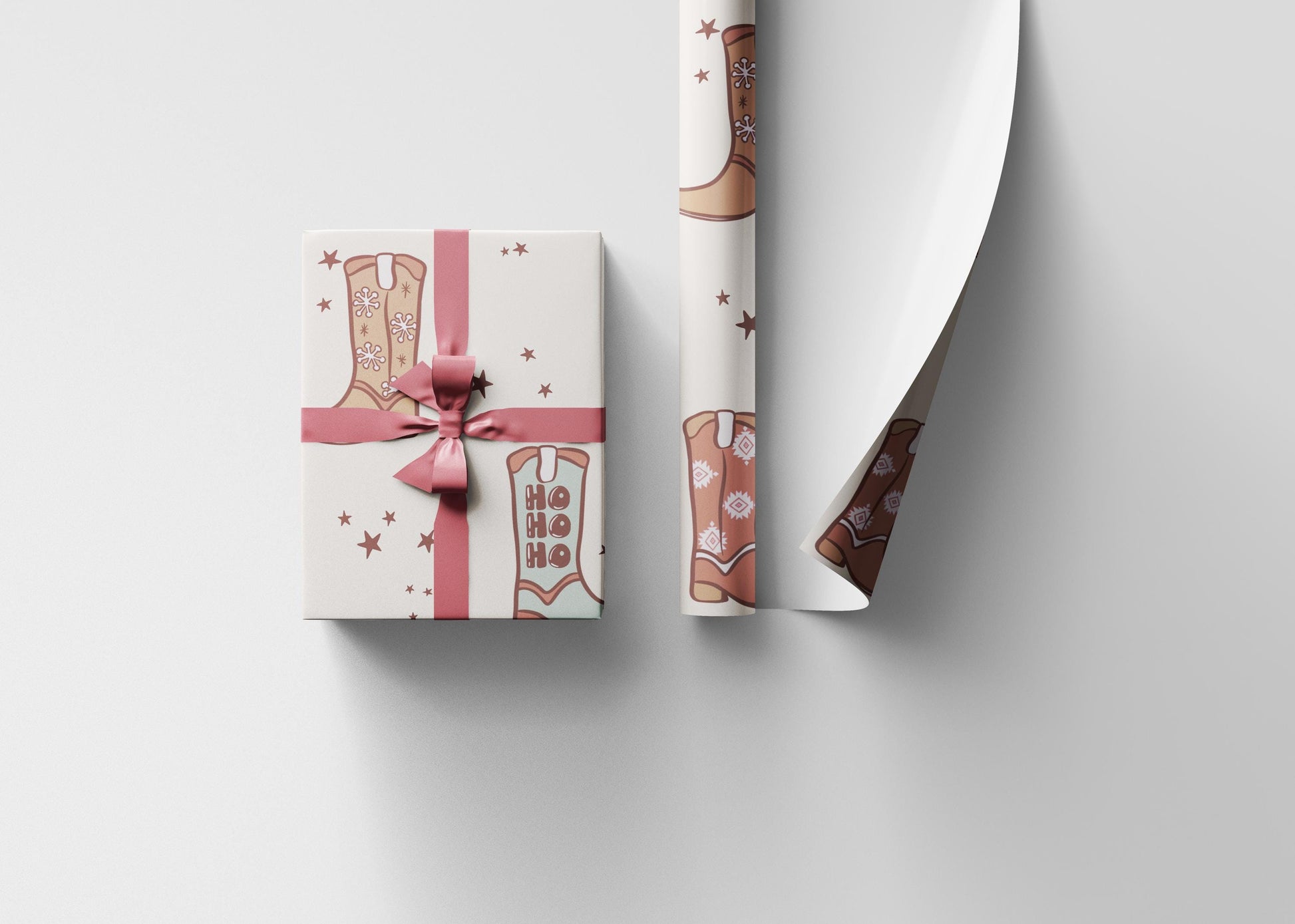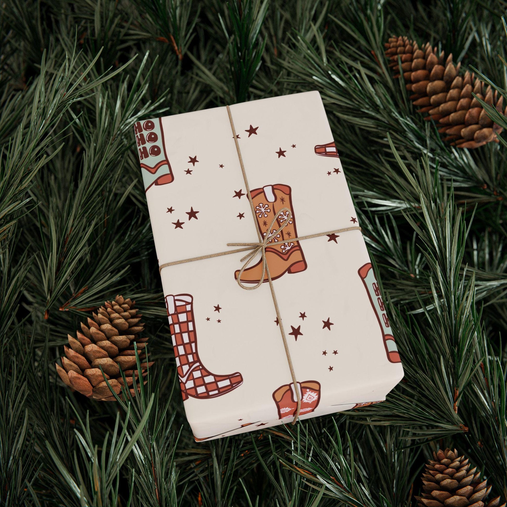 Western Christmas wrapping paper Southwest Vintage Cowboy Christmas Wrapping Paper Roll, Cowgirl Holiday Gift Wrap with Retro Design