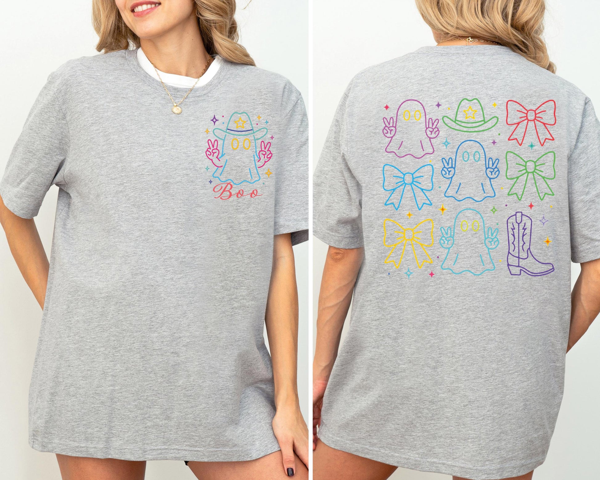 Western Halloween Boo Shirt, Coquette Halloween Bow Shirt, Cowboy Ghost Halloween Shirt, Spooky Season Ghost Bow Sweatshirt