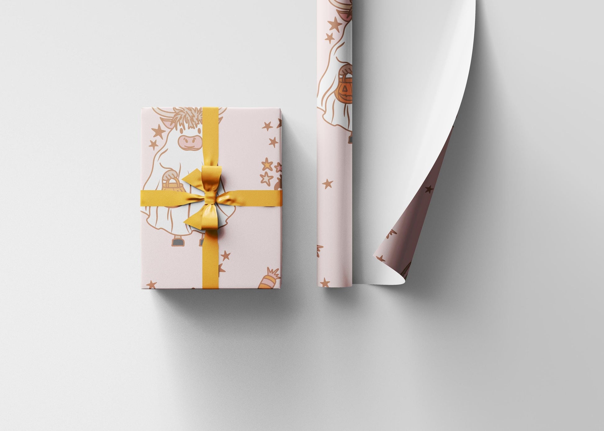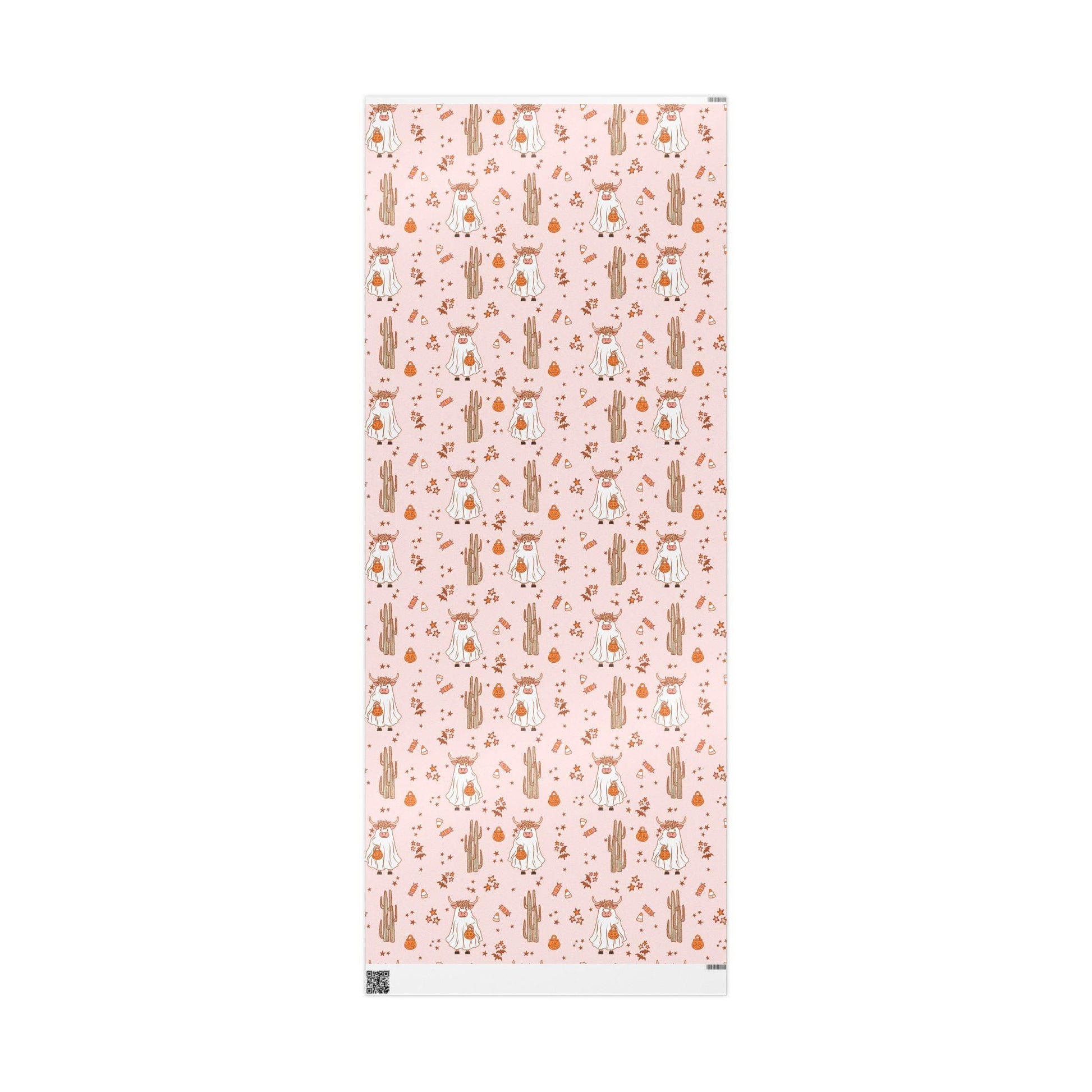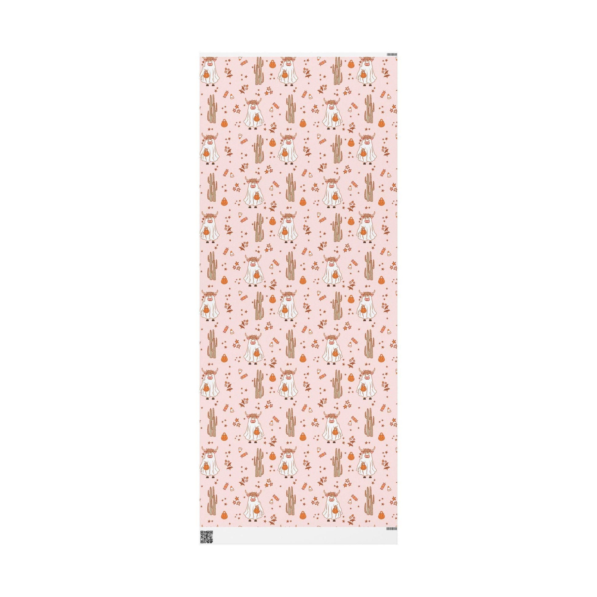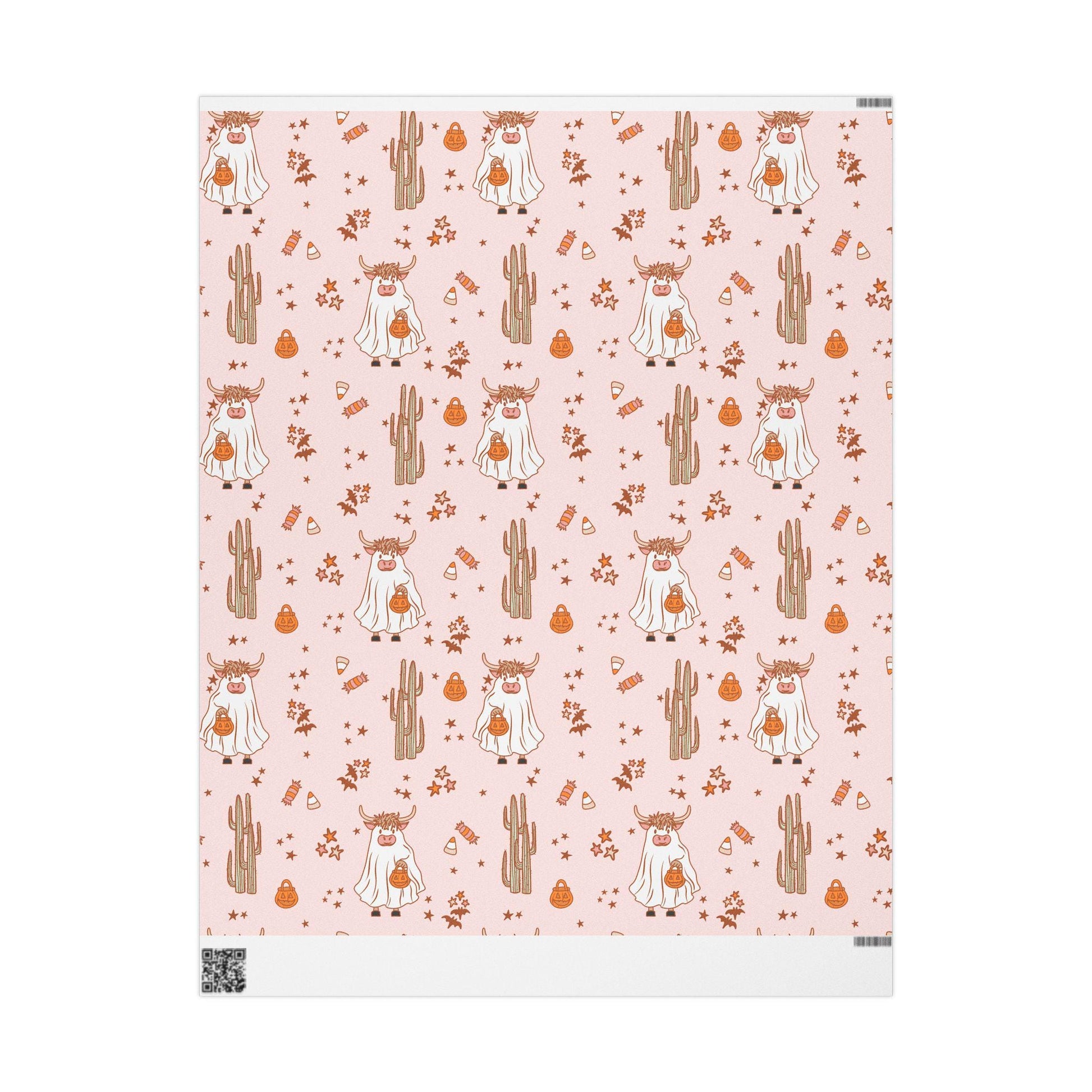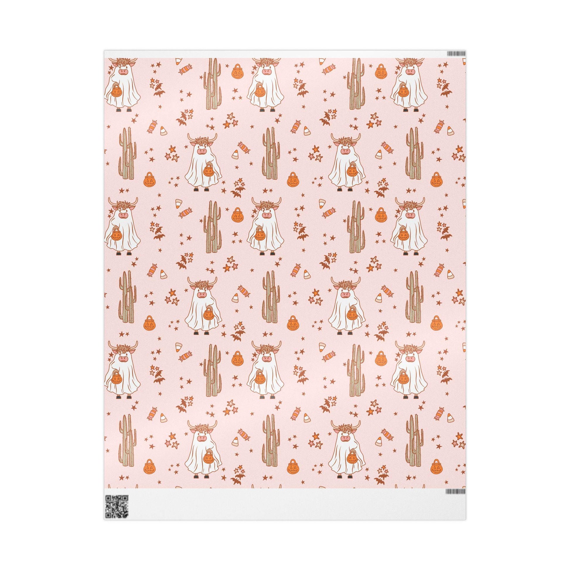 Western Halloween Wrapping Paper Roll, Spooky Highland cow Gift Wrap, Cowboy Halloween Gift Packaging, Rustic Trick or Treat