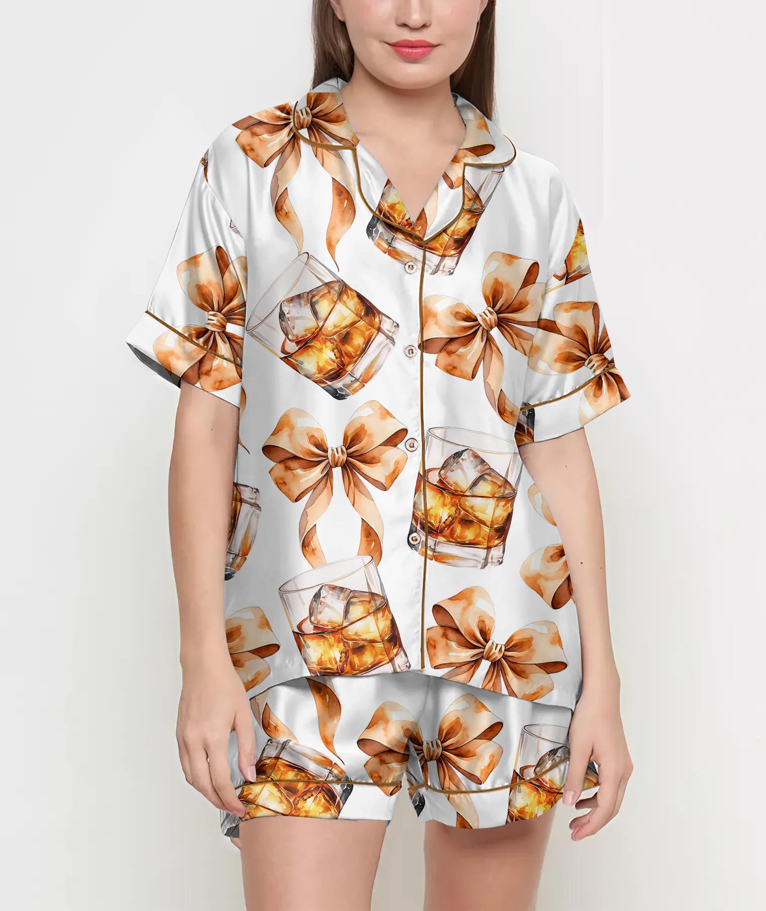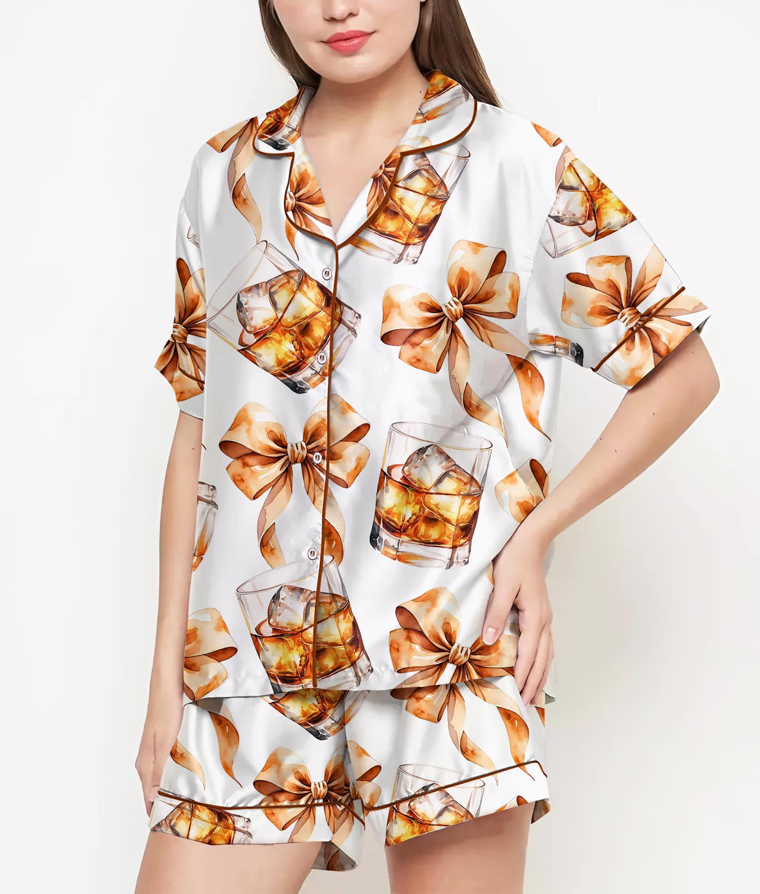 Whiskey Glass Coquette Pajamas Satin Set, Women Gift, Mother's Day Gift, Birthday Gift, Pjs For Women, Bridesmaid Gifts, Bachelorette 43