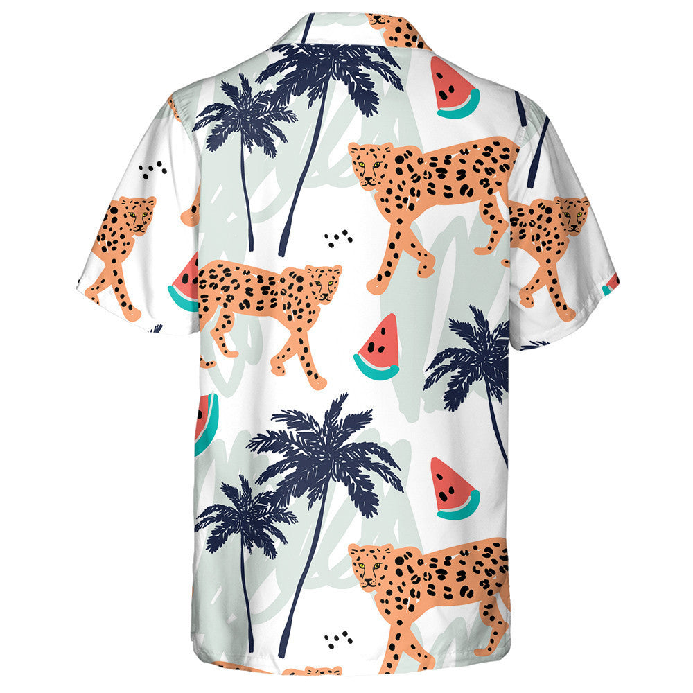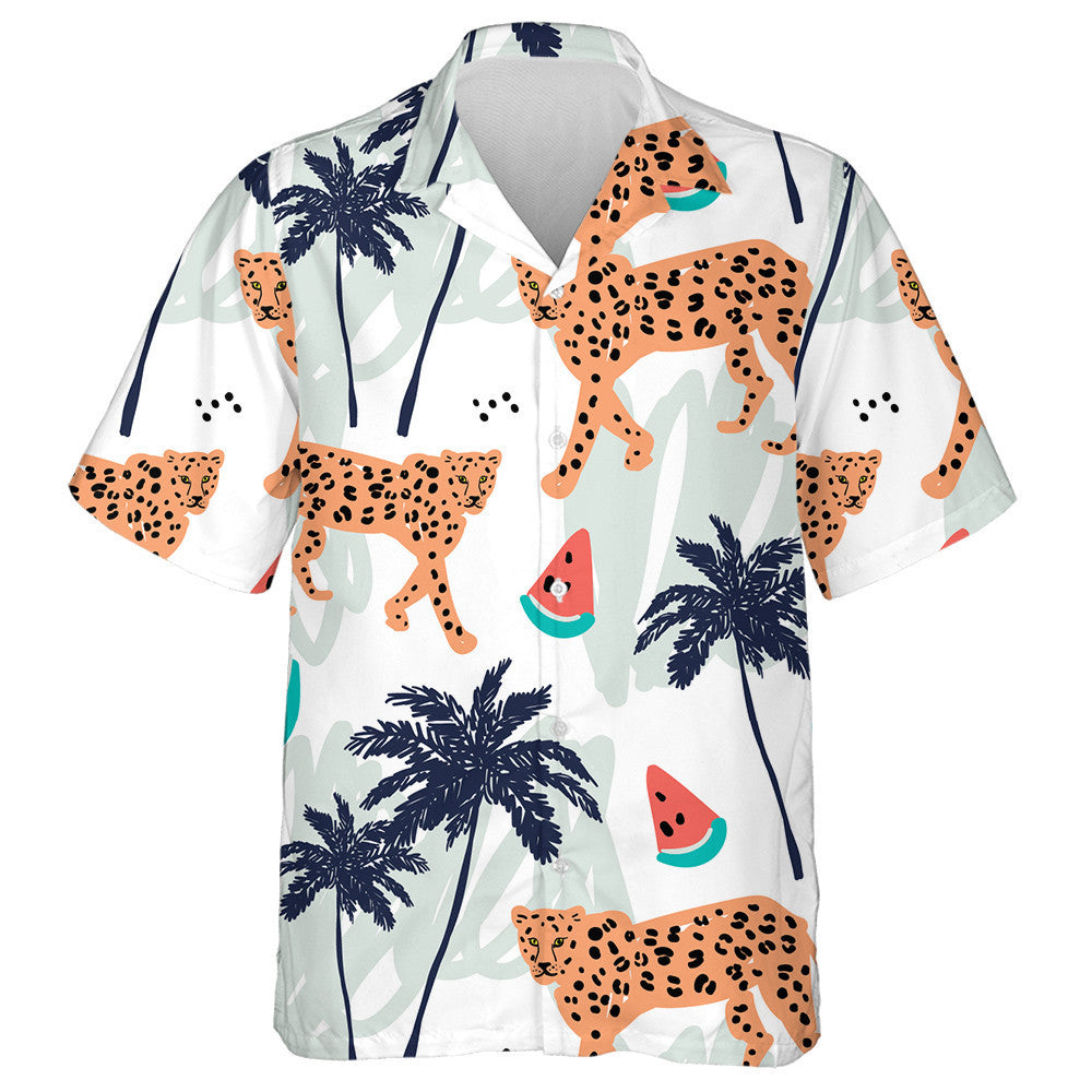 Liopard Fiáin na hAfraice le Mealán Uisce Agus Crainn Pailme Léine Haváís, Bronntanas Léine Haváís, Bronntanas Nollag