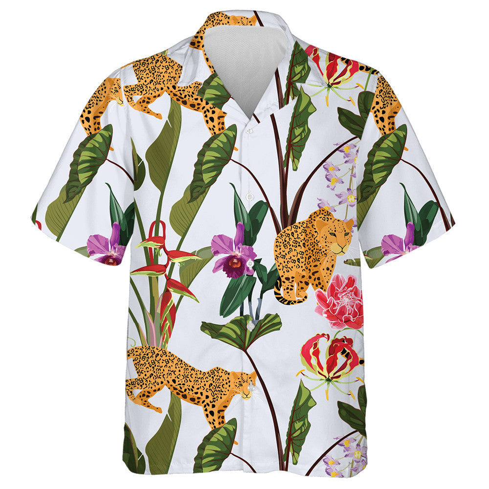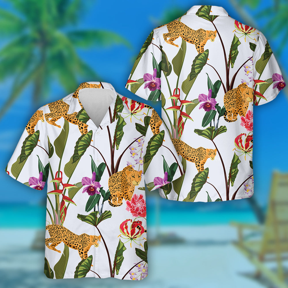 Ainmhithe Fiáine Liopard Agus Gléasra Glas Nádúrtha Trópaiceach Léine Haváís, Bronntanas Léine Haváís, Bronntanas Nollag
