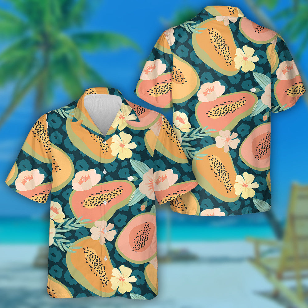 Ainmhithe Fiáine Craiceann Liopard Le Papaya Agus Bláthanna Léine Haváís, Bronntanas Léine Haváís, Bronntanas Nollag