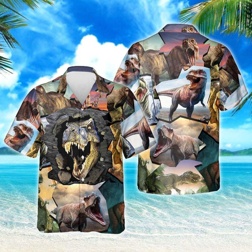 Saol Fiáin As Dearadh Dineasár T-Rex Léine Haváís, Bronntanas Léine Haváíais, Bronntanas Nollag