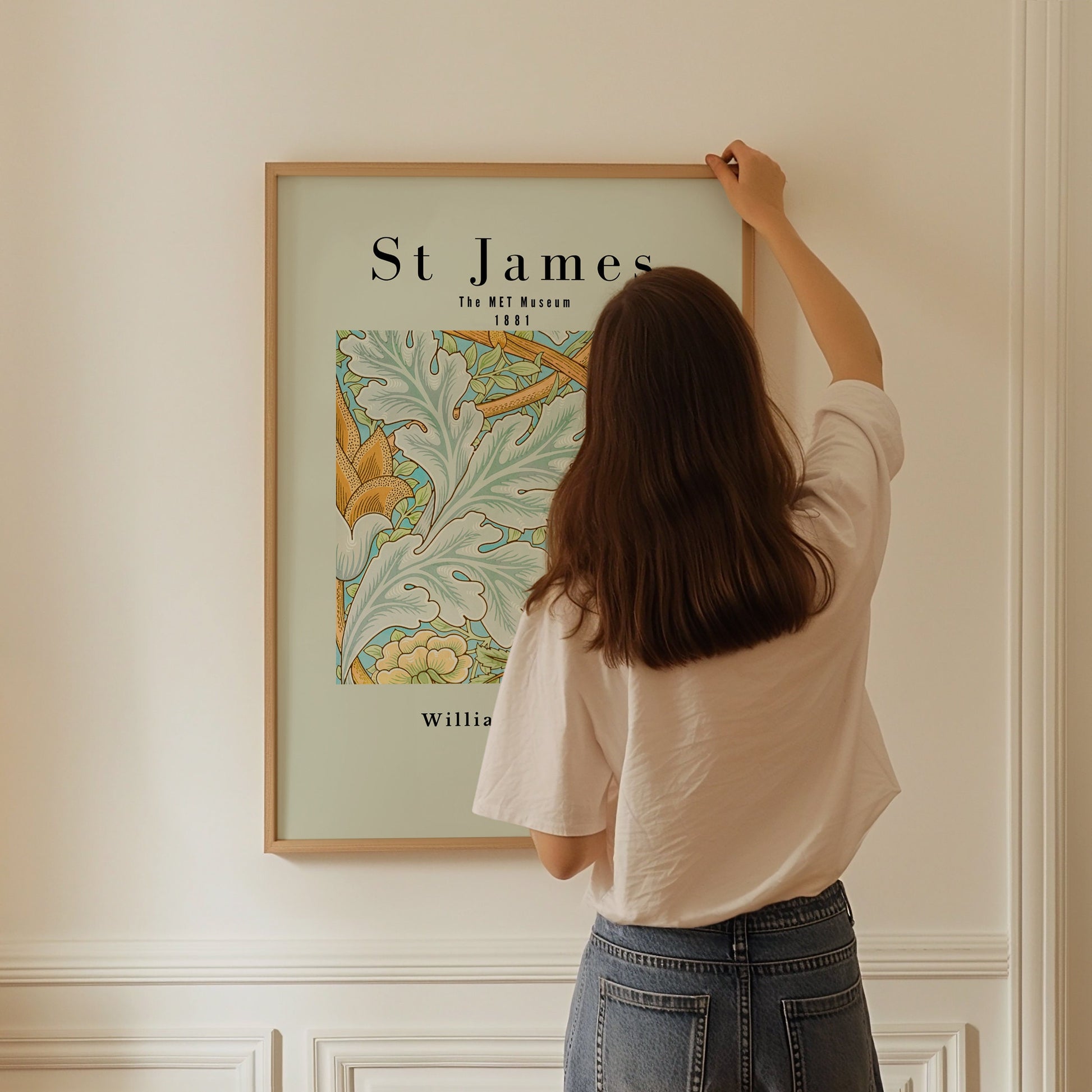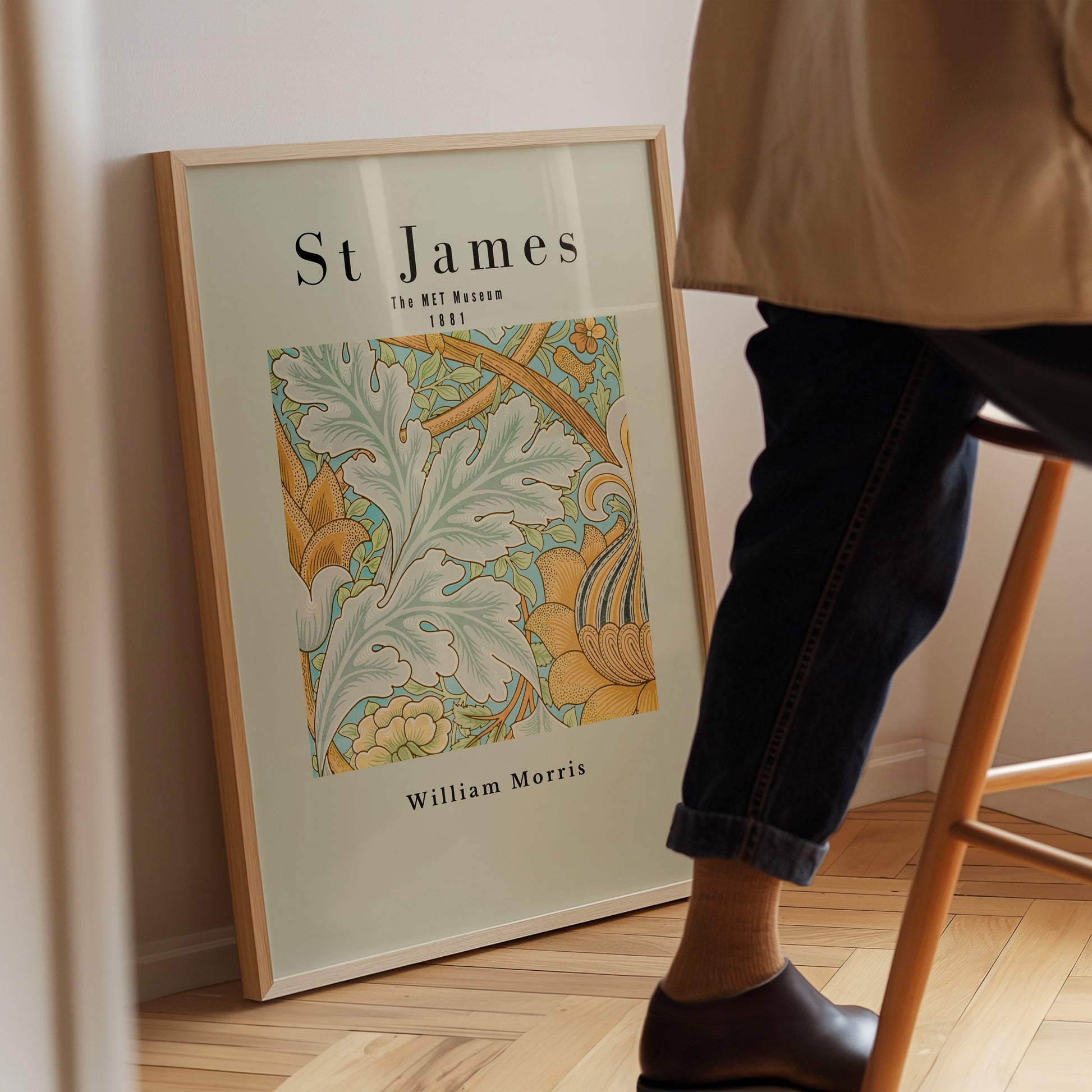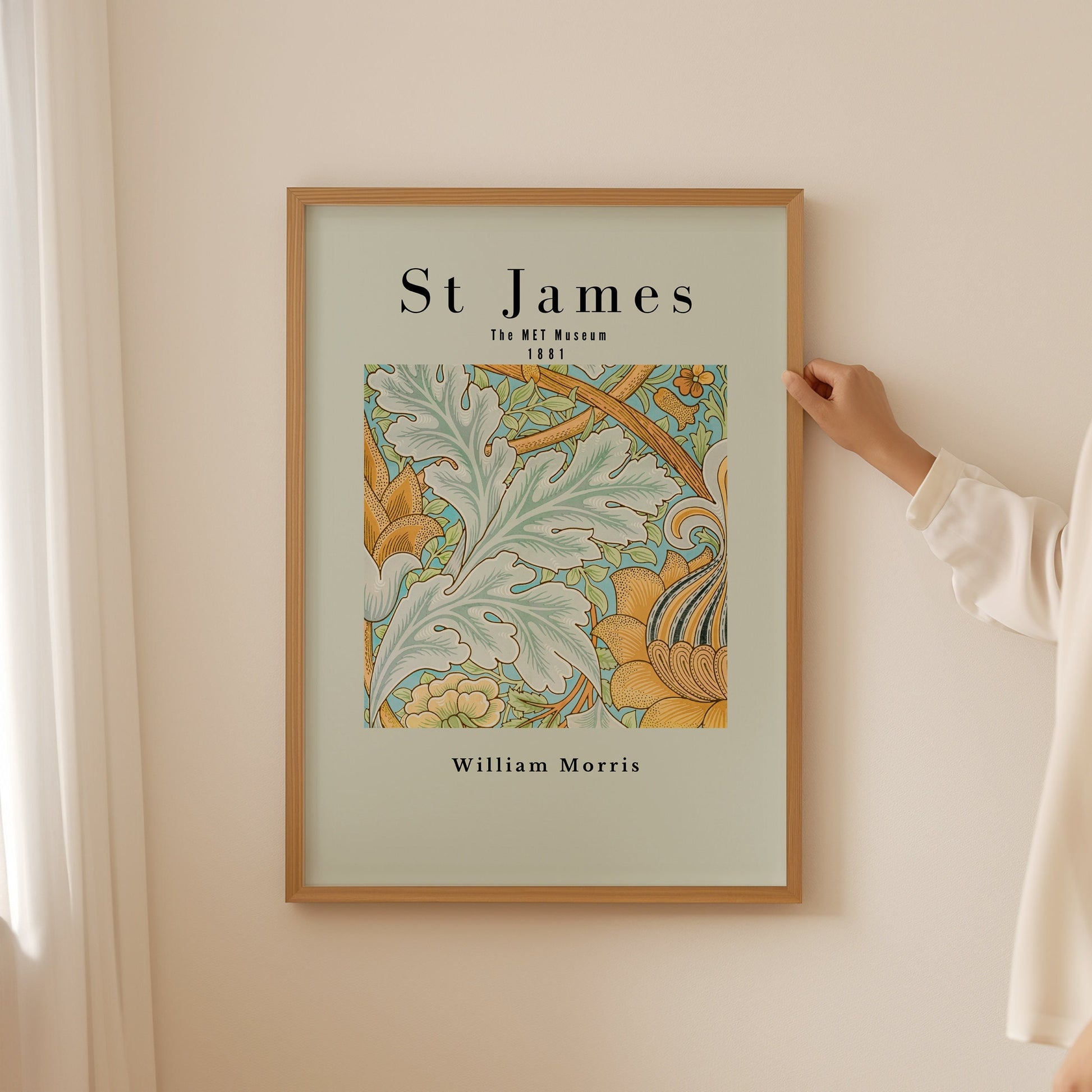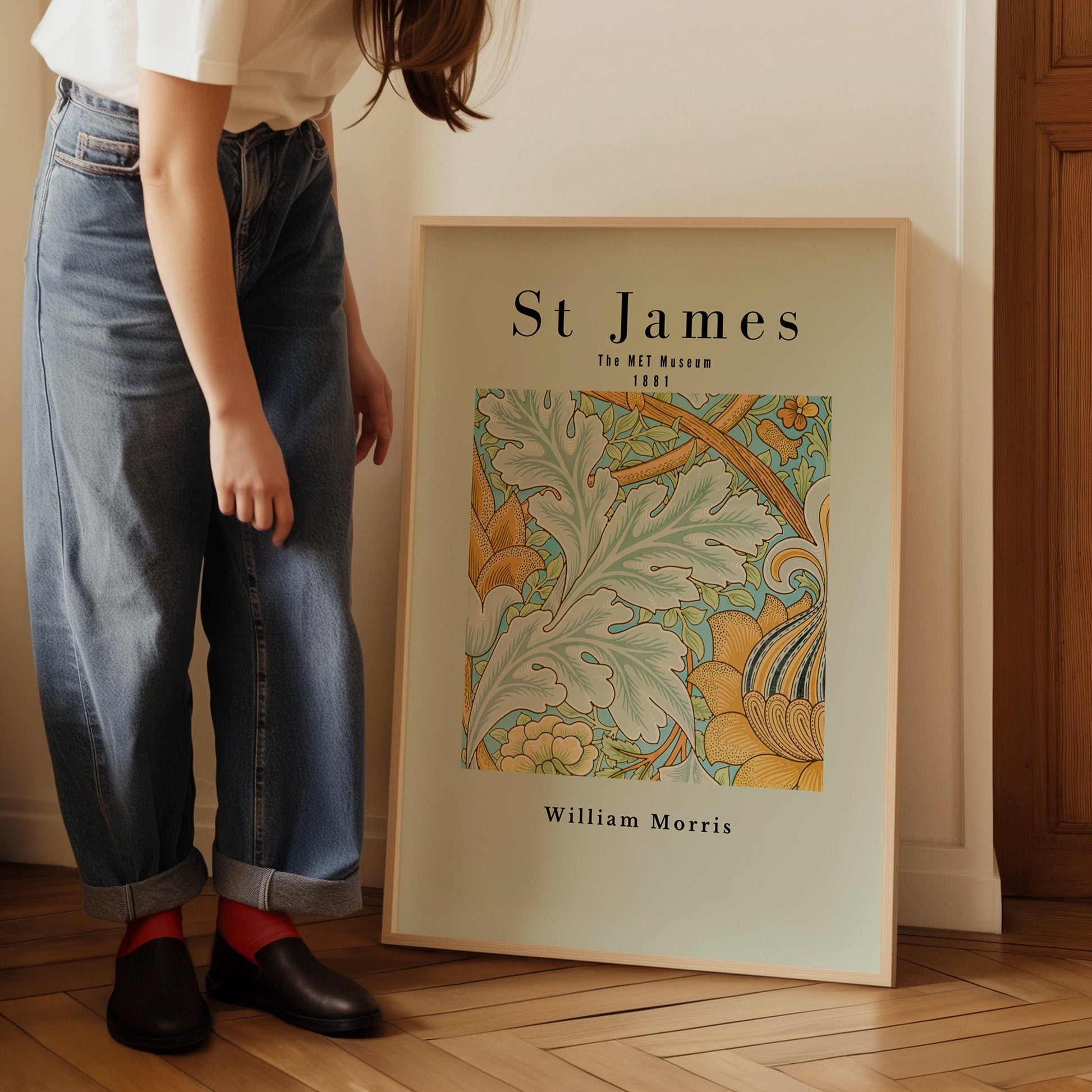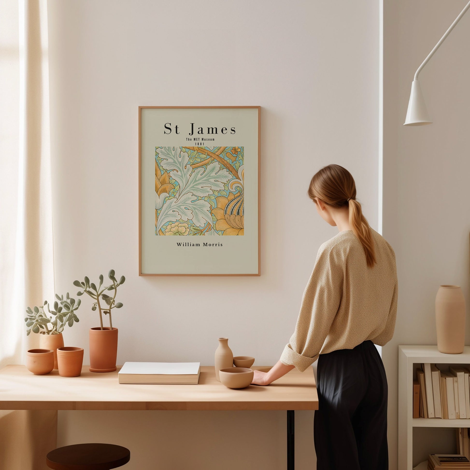 William Morris Poster - Centerpiece Botanical Flower and Leaves Art: Tropical Wall Art, Exhibition Poster, Modern Wall Art for Office Decor