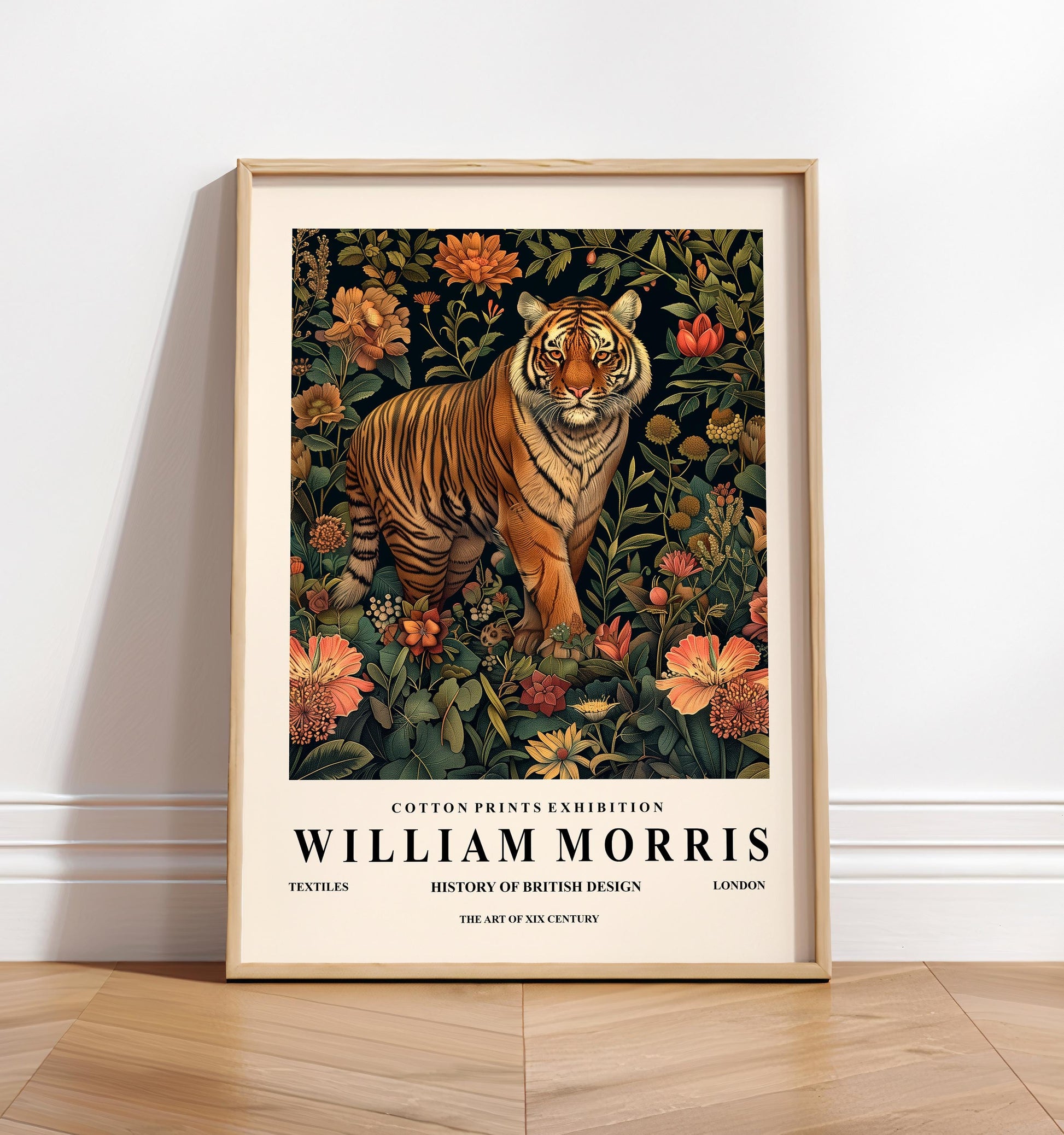 William Morris Tiger Print: Dark Botanical Mid-Century Modern Wall Art