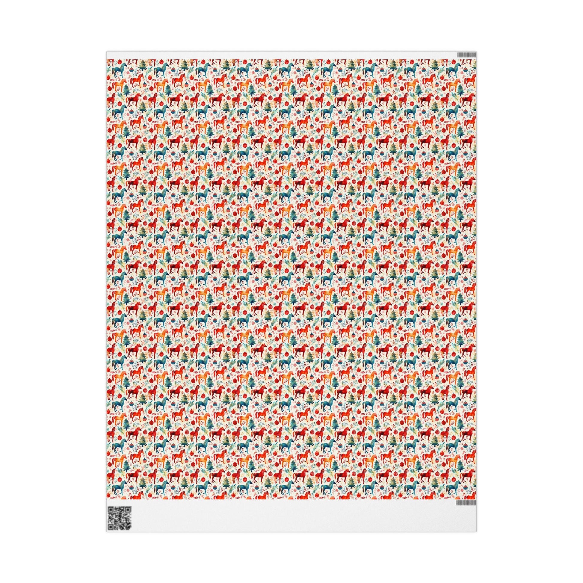 Winter Horse Print Wrap, Equestrian Xmas Wrapping Paper, Holiday Cowgirl Gift Paper, Festive Horse Lover Wrap, Riding Present Sheet