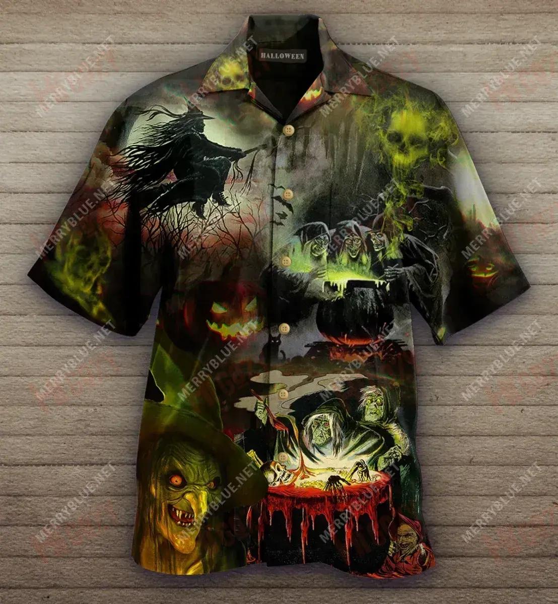 Witches faoi deara Tú Oíche Shamhna Léinte Haváís Caitheamh aimsire Muinchille Gearr Léinte Crazy Haváís Léinte haváíais d'Fhir, Bronntanas Léine Haváís, Bronntanas Nollag