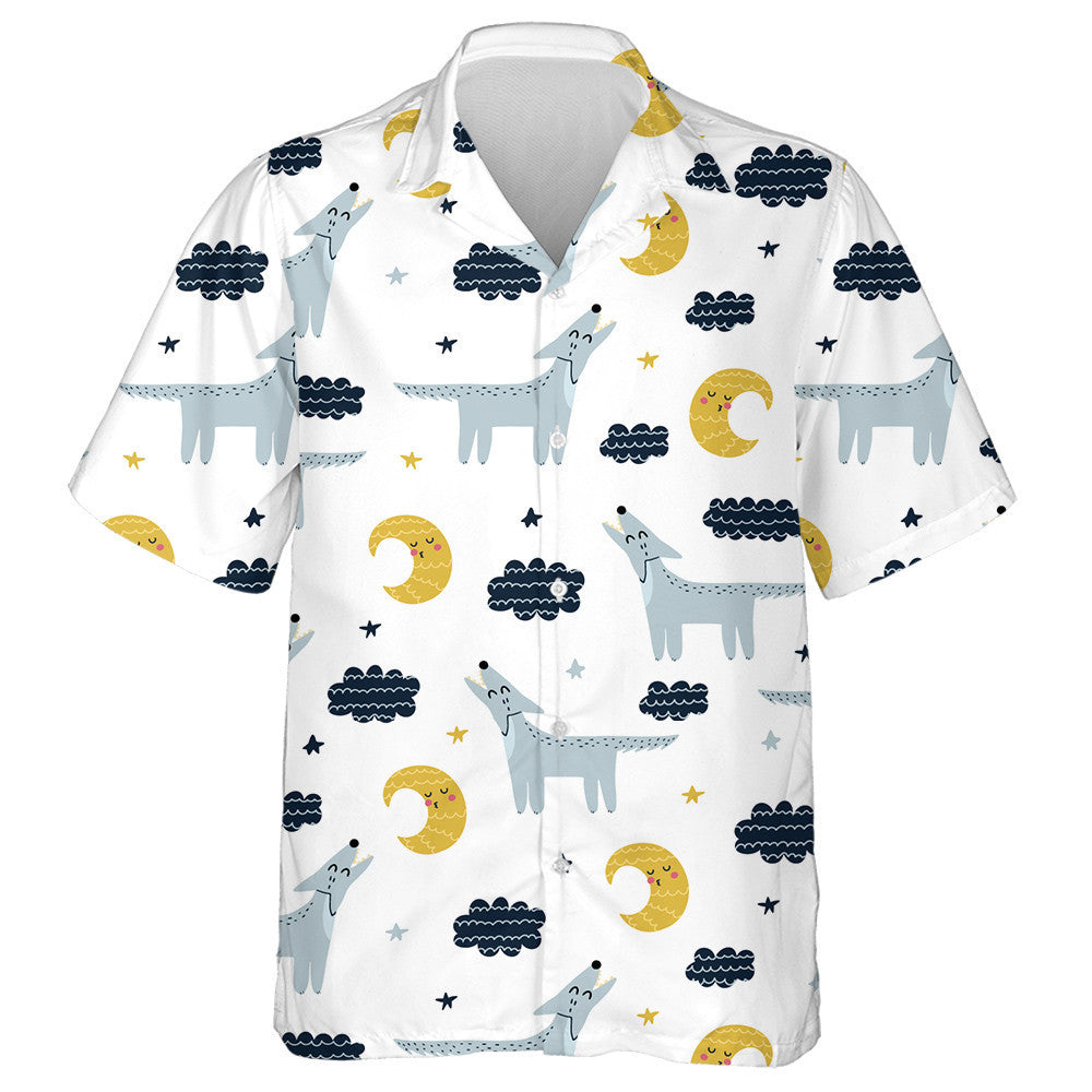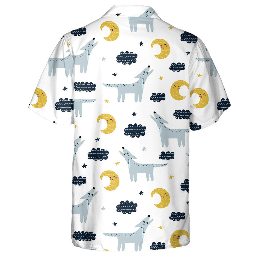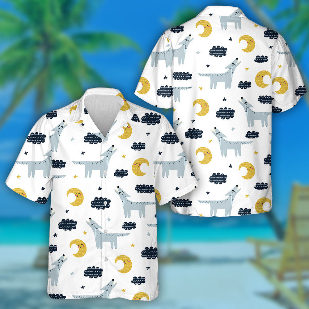 Wolf Howling Ag an Ghealach Carachtar Foraoise Gleoite Léine Haváís, Bronntanas Léine Haváíais, Bronntanas Nollag