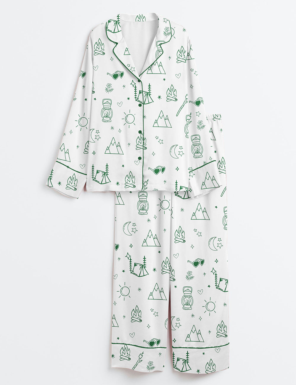 Women’s Camp Bach Bachelorette Party Outdoors Wedding Print Long Sleeve Satin Pajama Set