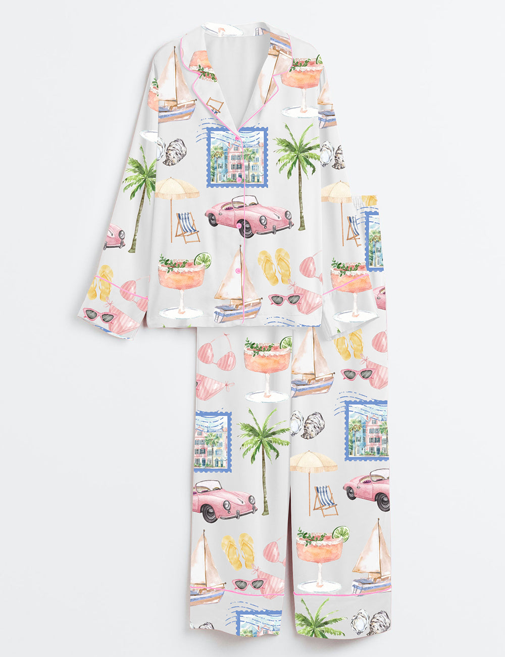 Women’s Charleston Bachelorette South Carolina Girls Trip Travel Long Sleeve Satin Pajama Set
