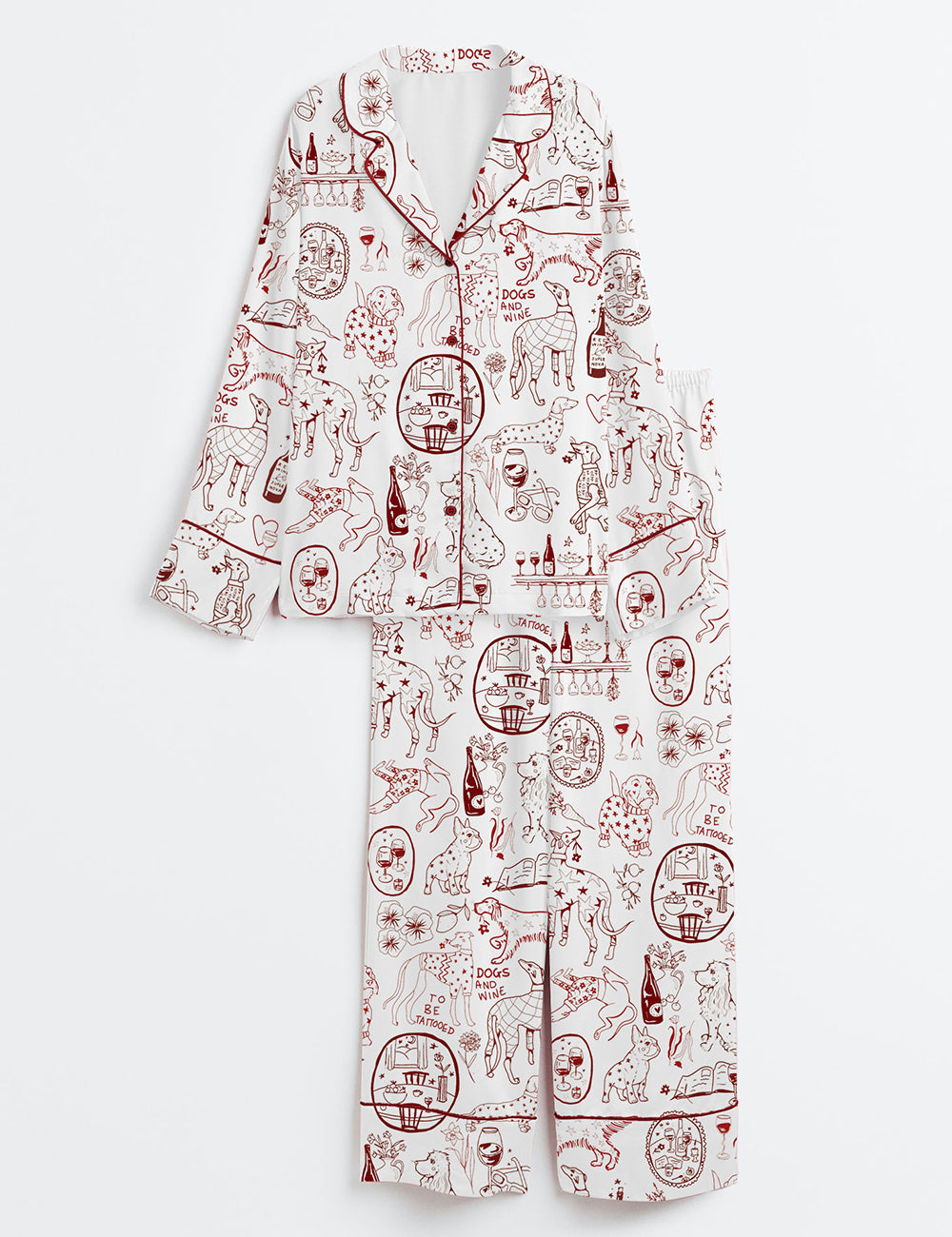 Women’s Dog And Wine Long Sleeve Satin Pajama Set