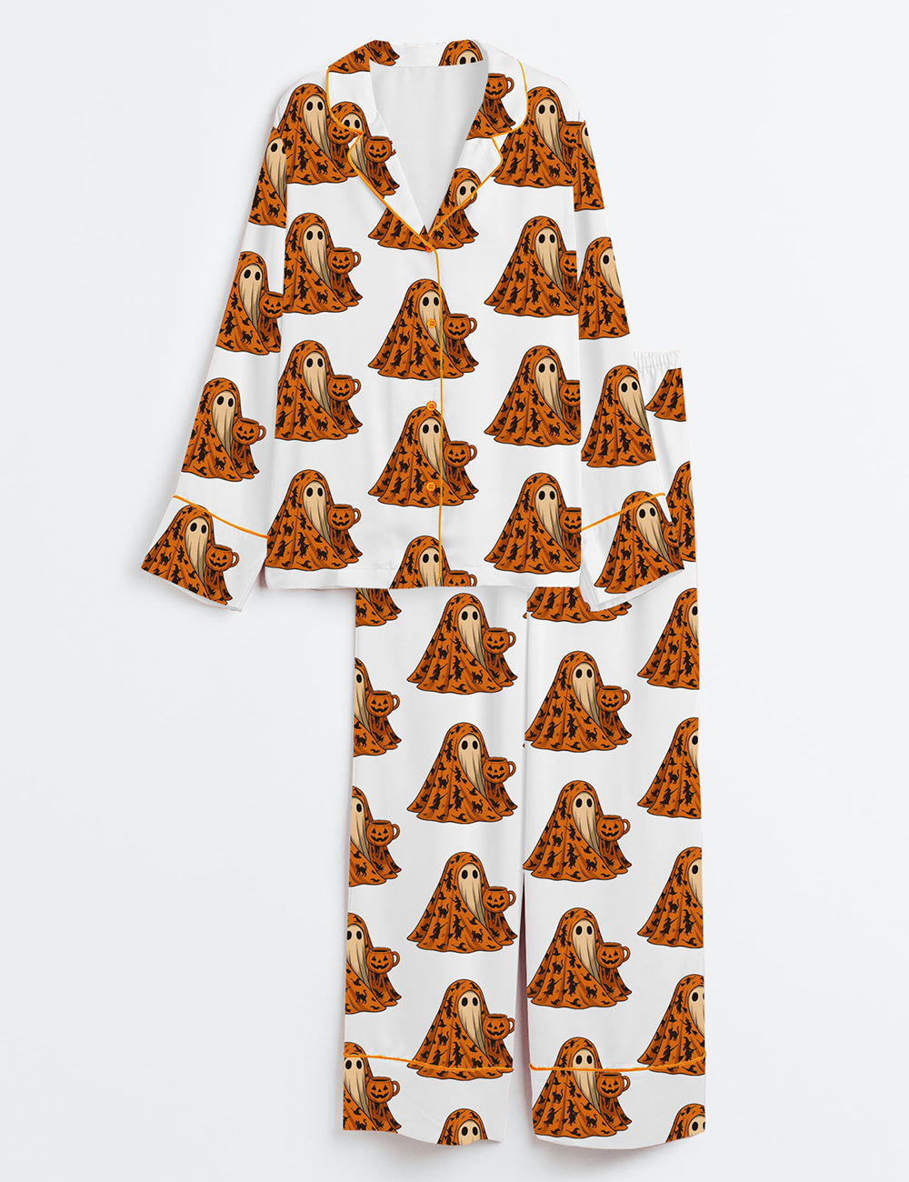 Women’s Halloween Ghost Cool Outside Long Sleeve Satin Pajama Set