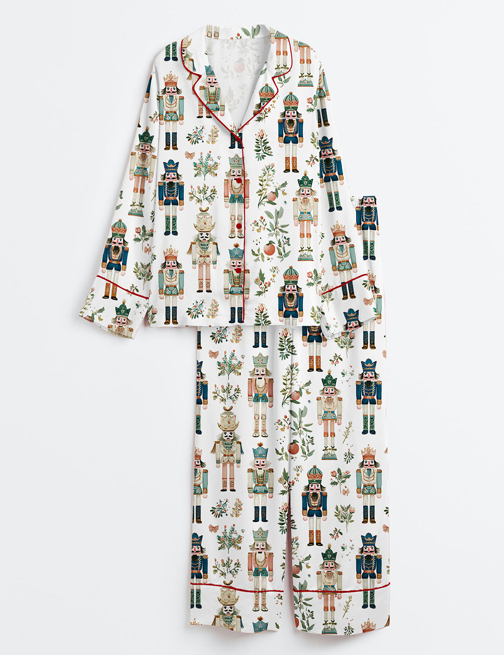 Women’s Nutcracker Soldiers Floral Christmas Long Sleeve Satin Pajama Set