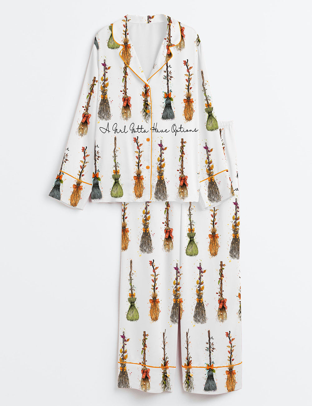 Women’s Retro Halloween Witches A Girl Gotta Have Options Long Sleeve Satin Pajama Set