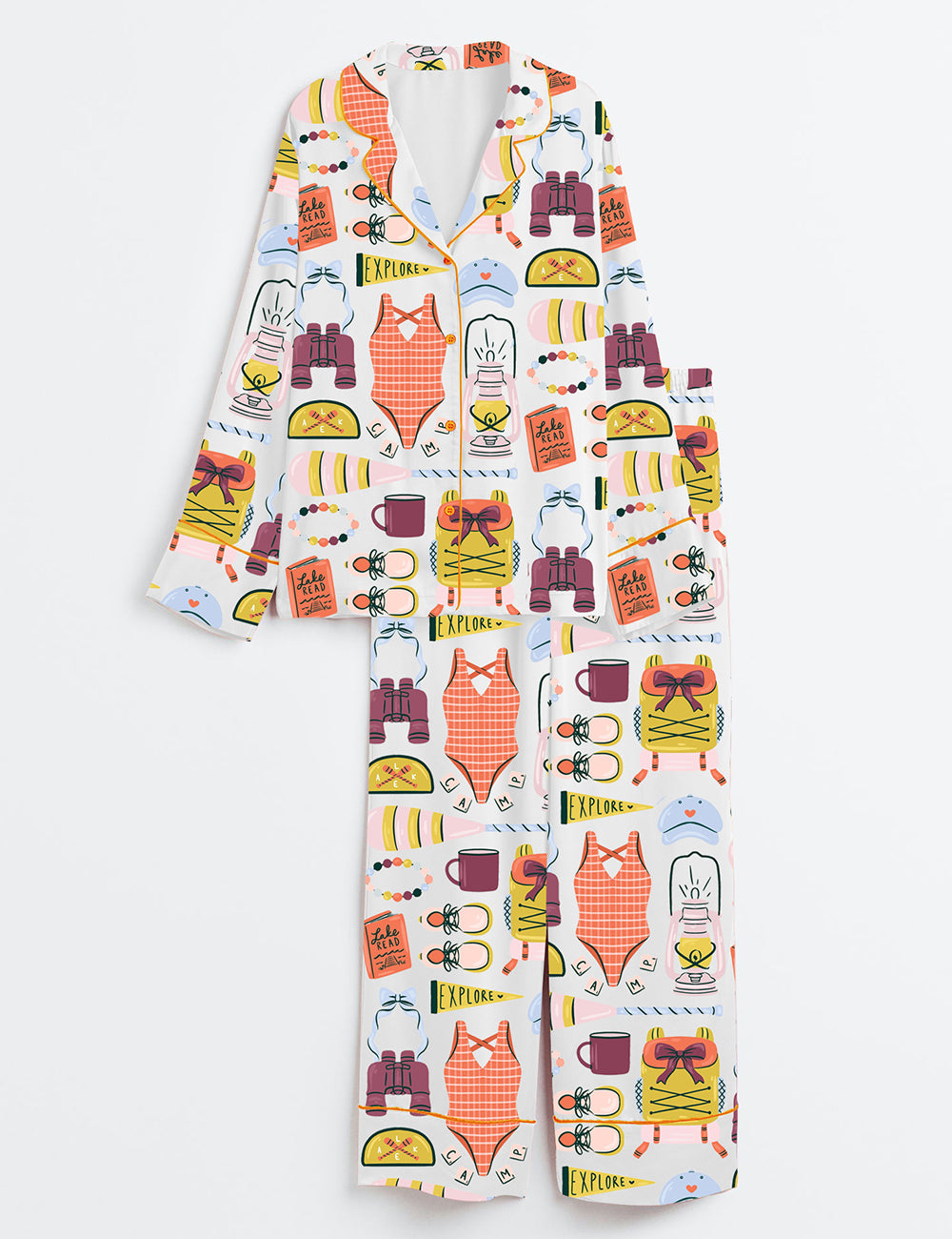 Women’s Summer Camp Long Sleeve Satin Pajama Set