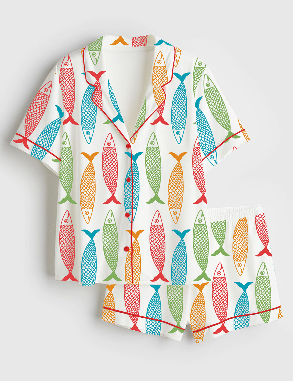 Women's Golfo de México 1550 Sardine Gulf Of Mexico Short Sleeve Satin Pajama Set