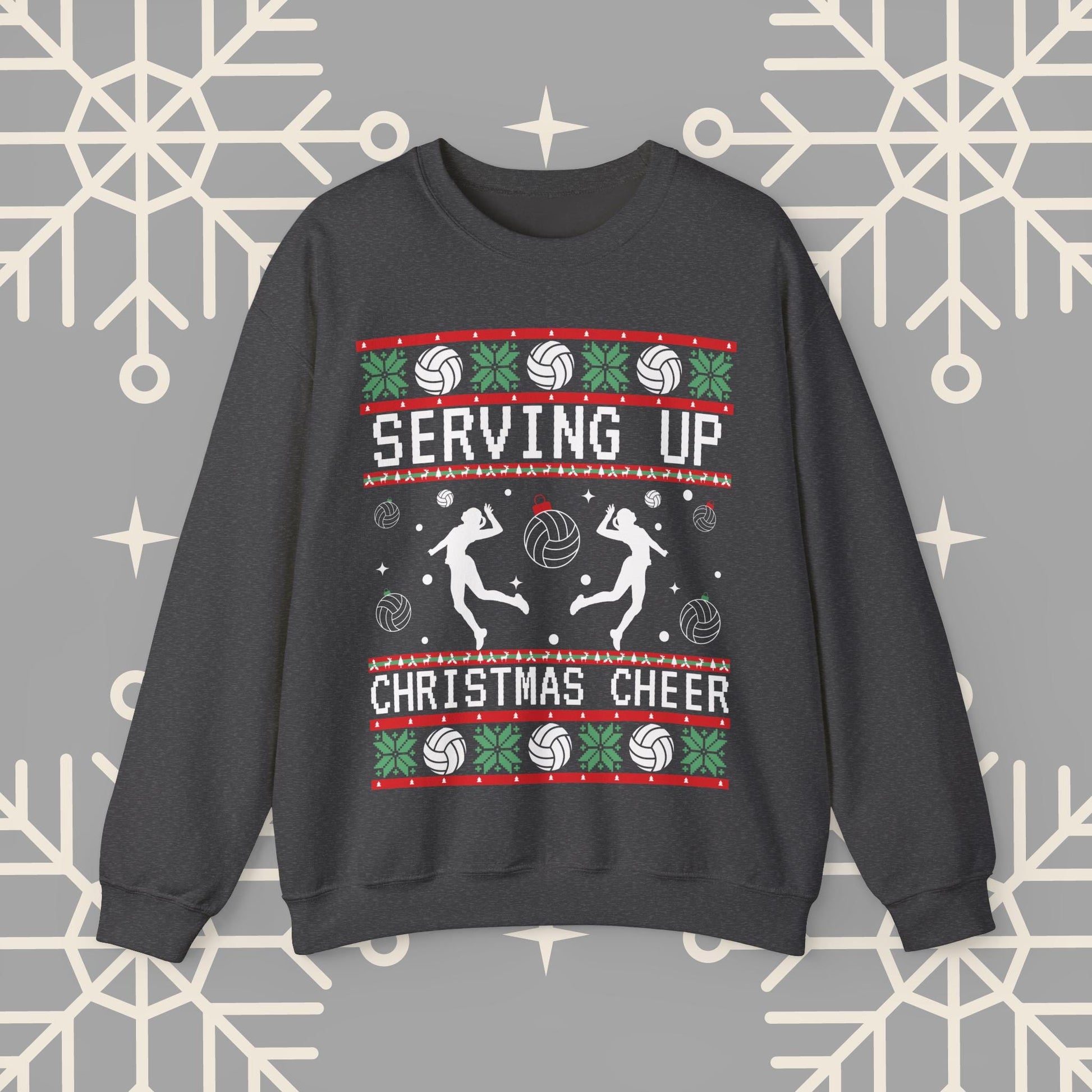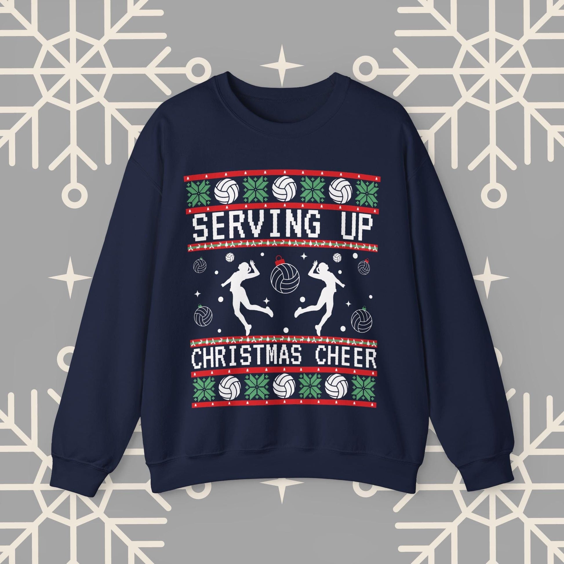 Women's Volleyball Ugly Christmas , Serving Up Christmas Cheer Sweatshirt, Volleyball Holiday Crewneck Jumper, Volleyball Gifts