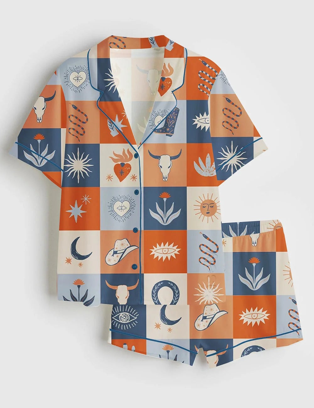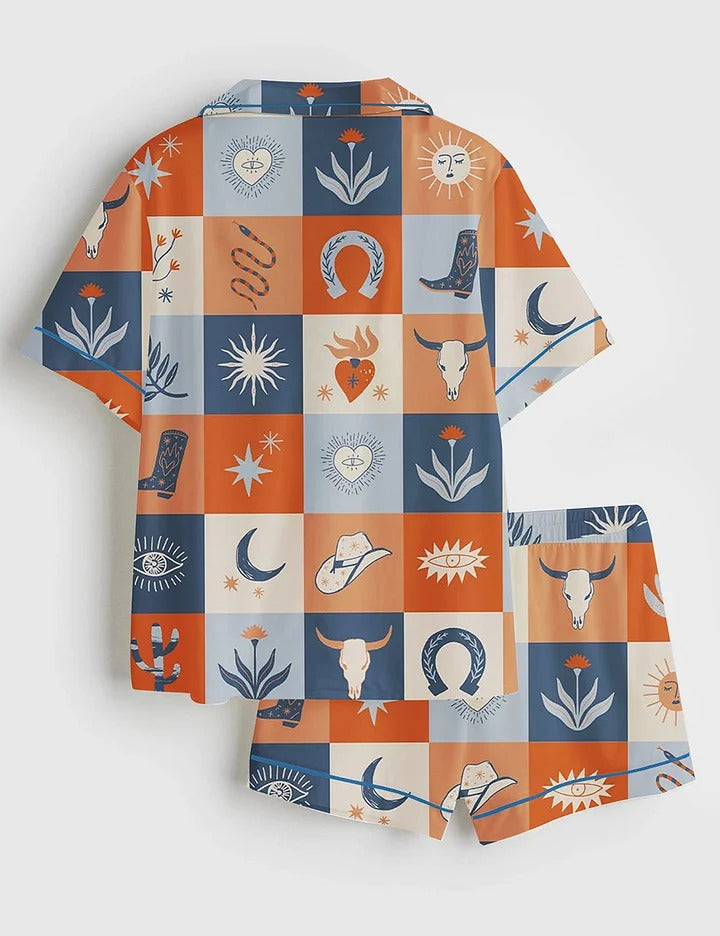 Women's Western Cowboy Long Sleeve Satin Pajama Set