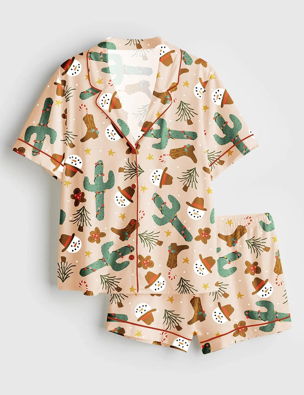 Women's Xmas Western Cowboy Boots Short Sleeve Satin Pajama Set