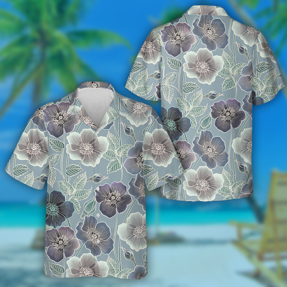 Duilleoga Bláthanna Corcra Iontacha Brainsí Patrún Líníochta Láimhe Léine Haváís, Bronntanas Léine Haváís, Bronntanas Nollag