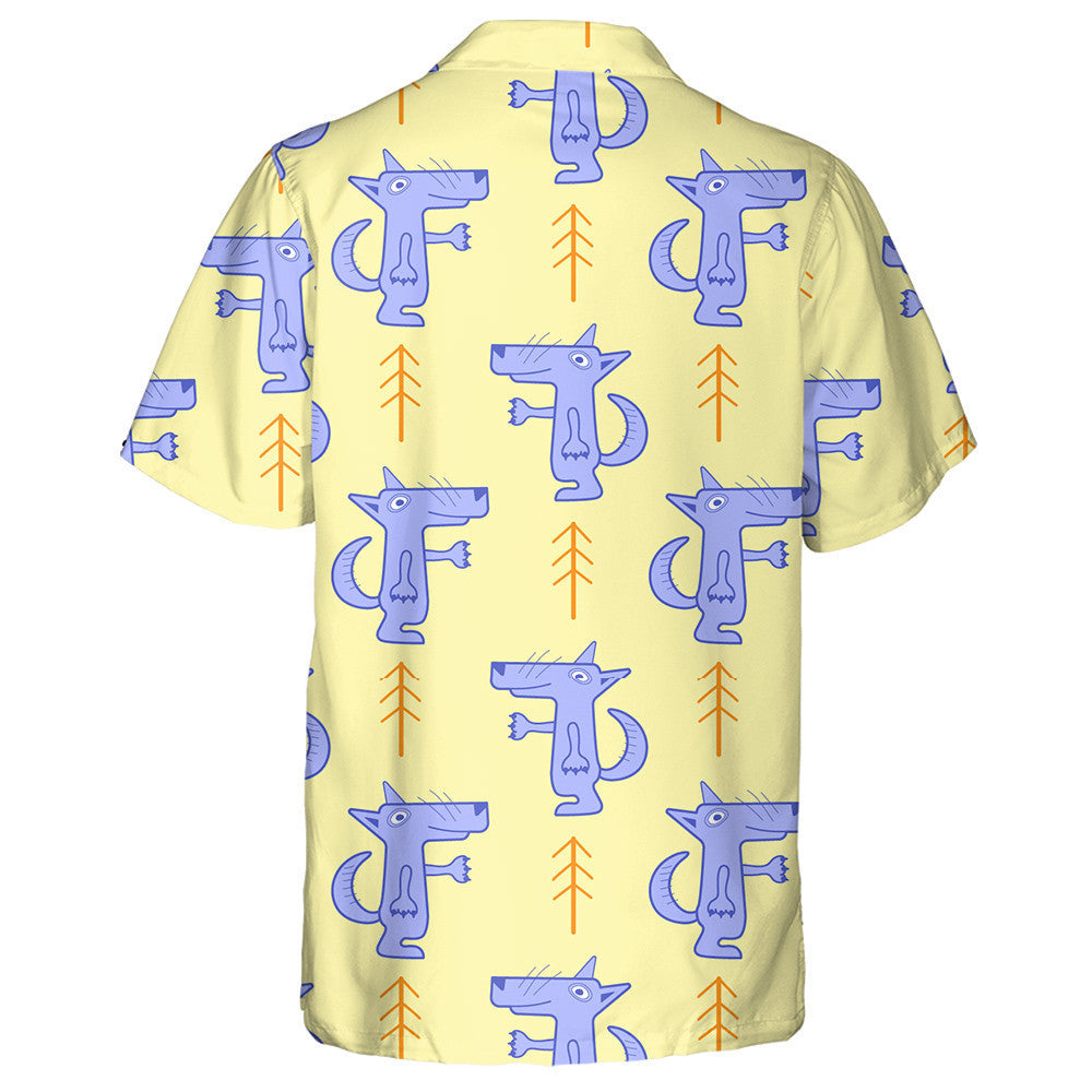 Cúlra Buí Le Cartún Mac Tíre Agus Crainn Giúise Léine Haváís, Bronntanas Léine Haváíais, Bronntanas Nollag