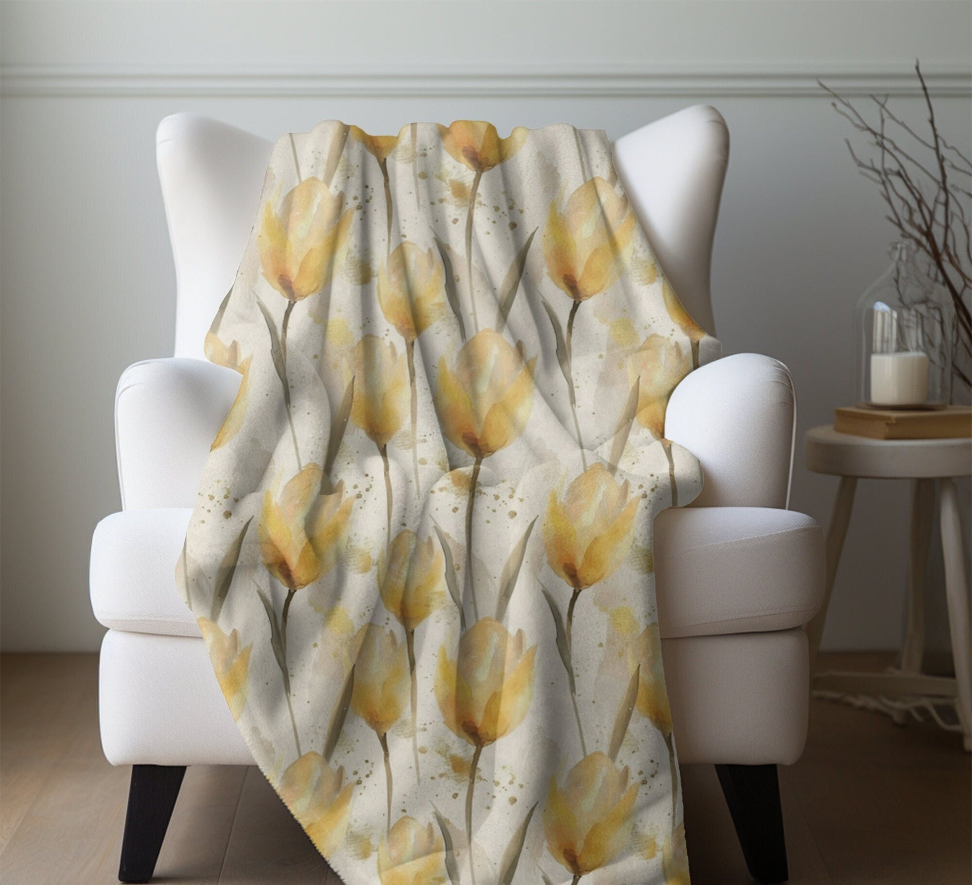 Yellow Tulip Blanket Floral Fleece Throw Yellow Spring Home Decor Flower Lovers Christmas Gift Ideas for Her Family Friends Gardener Present