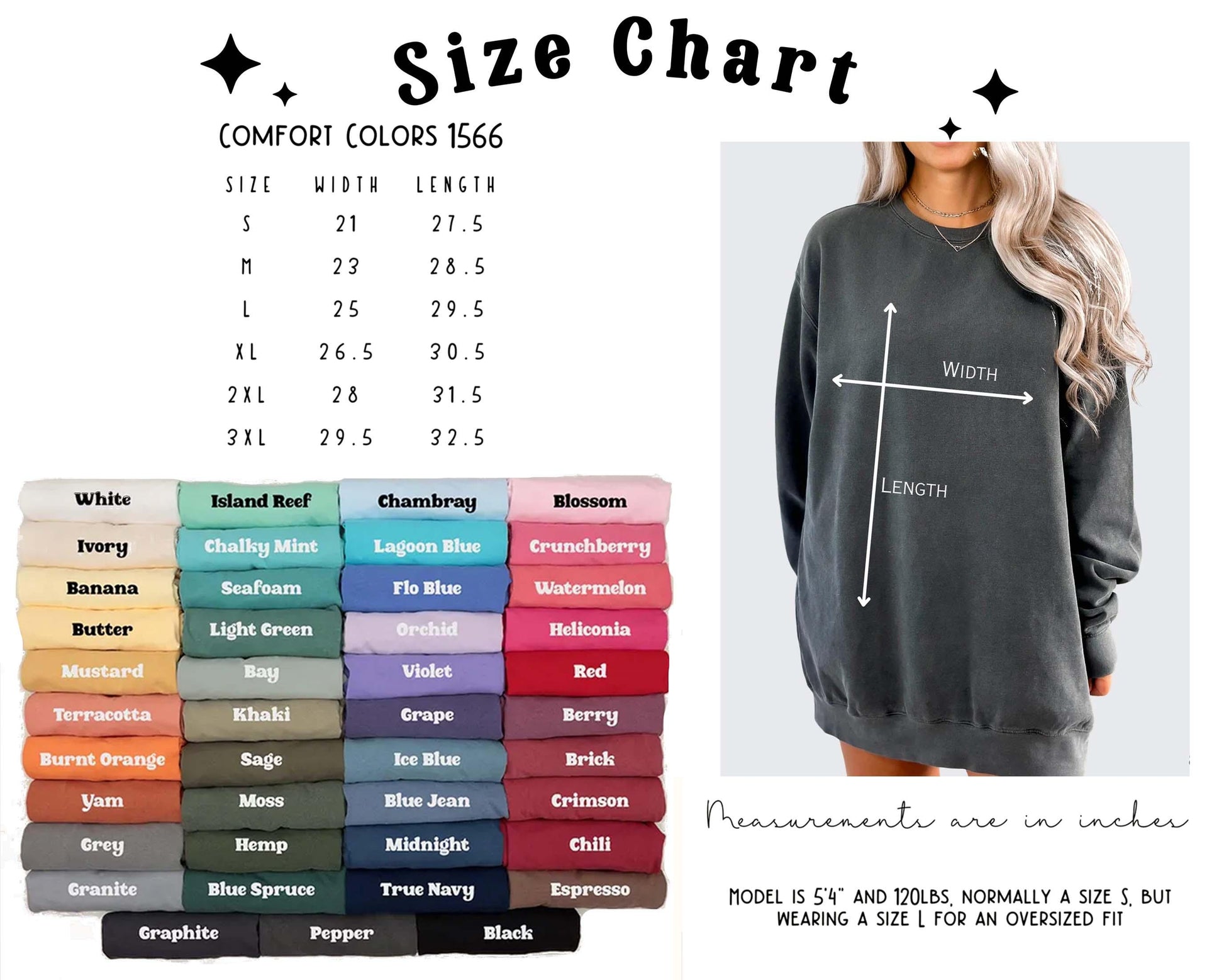 | SIZE | LENGTH (in) | WIDTH (in) | SLEEVE CENTER BACK (in) |