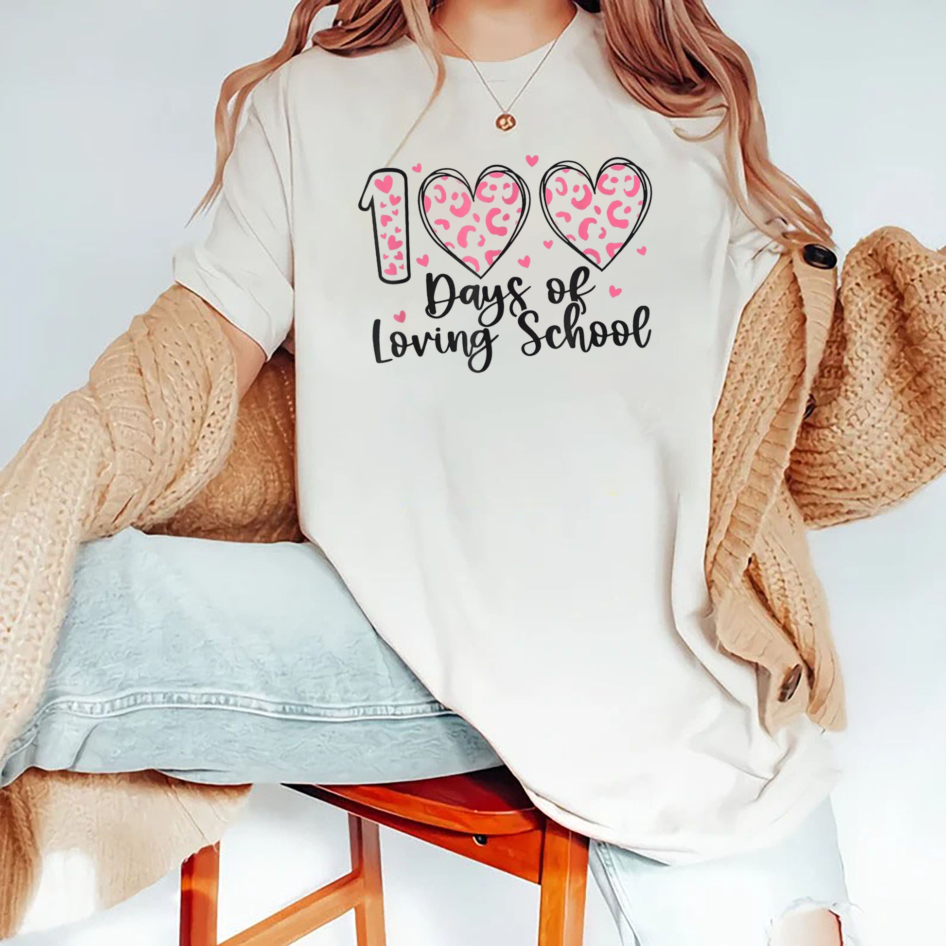 100 Days Of Loving School Leopard Heart Teacher Valentine T-Shirt