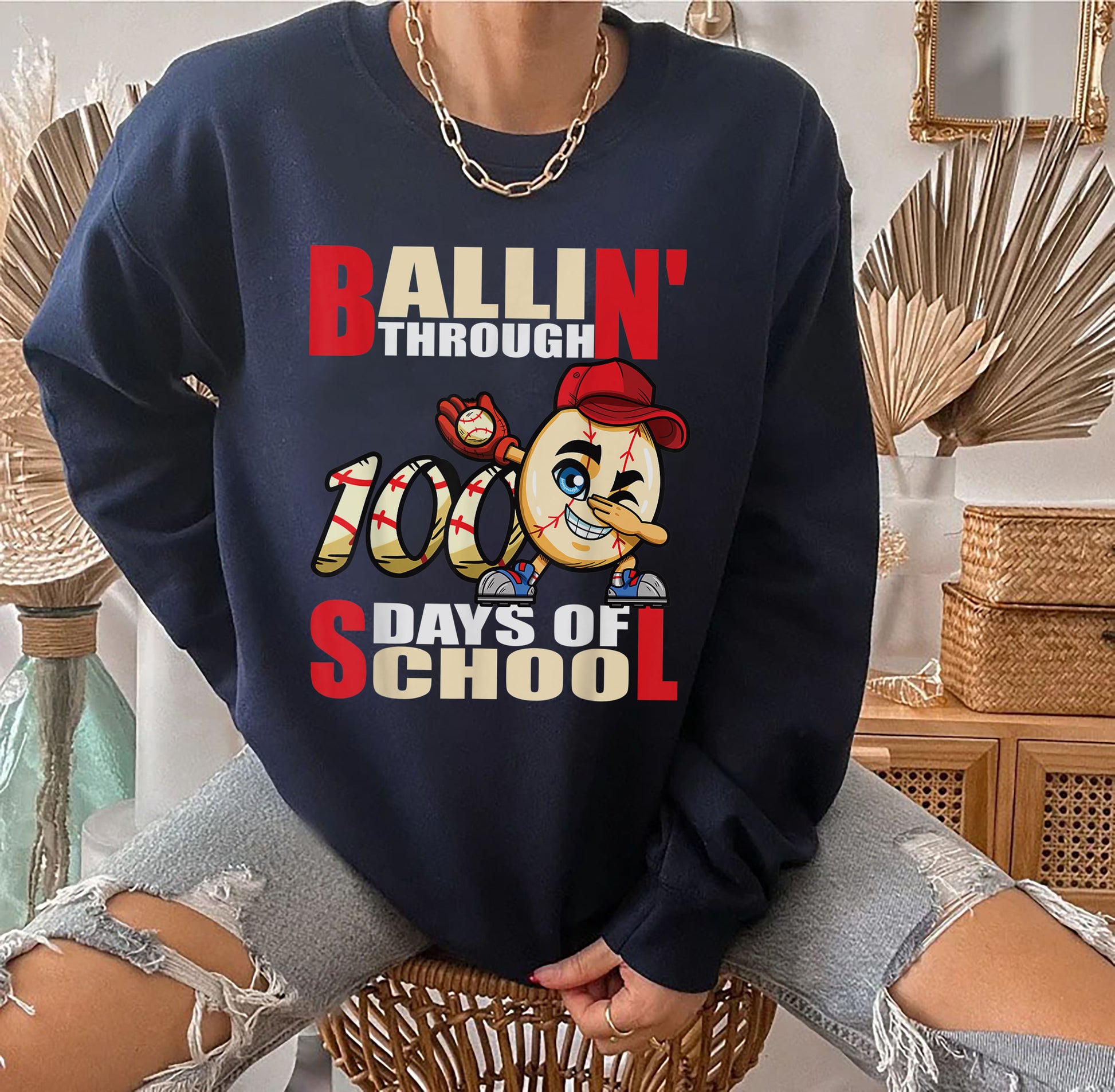 100 days of school shirt baseball boys 100th day shirt T-Shirt