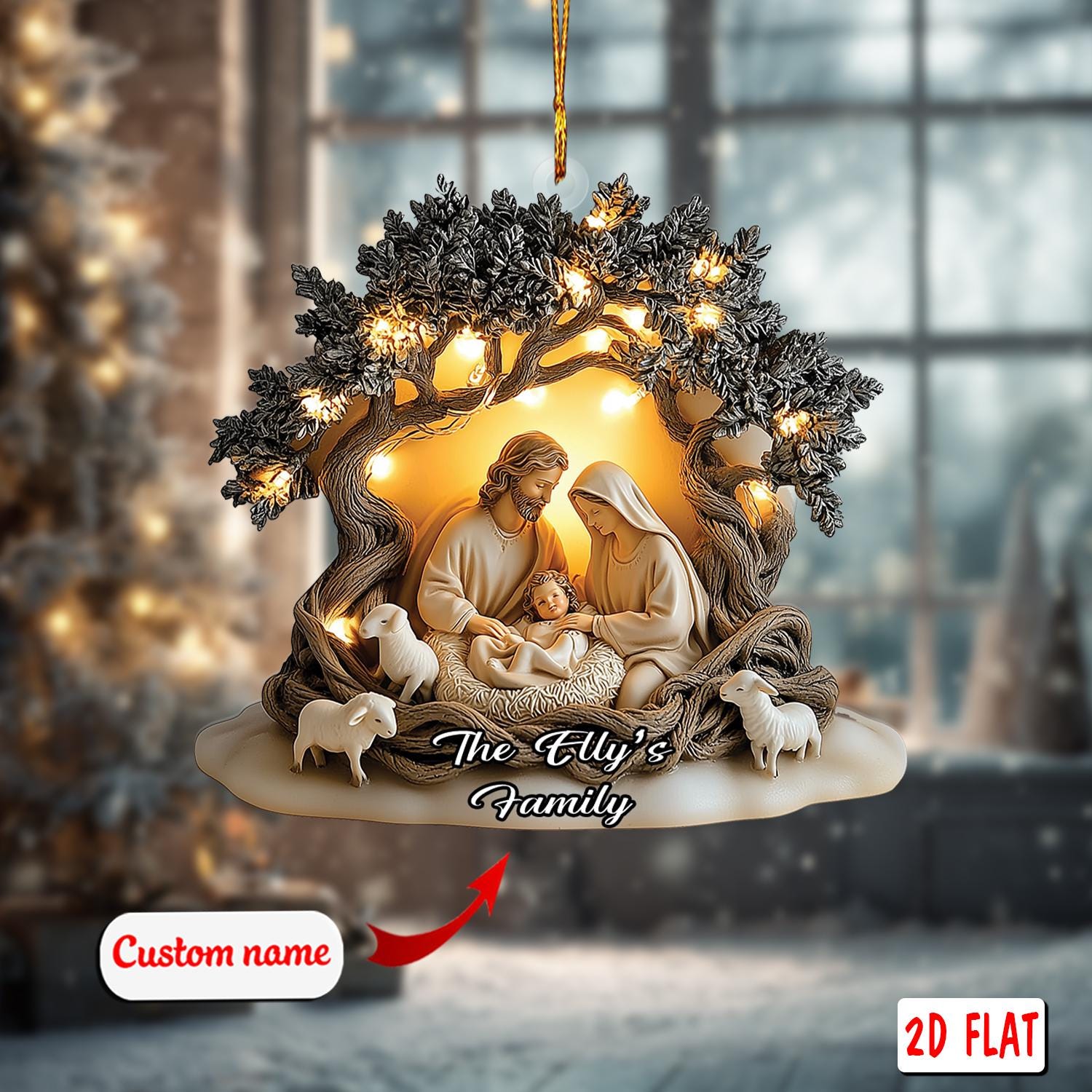 2D acrylic ornament, flat christmas ornament, personalized nativity ornament, custom name ornament, holy family ornament,religious xmas gift