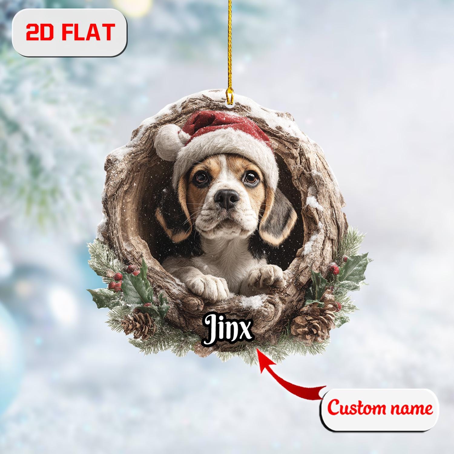 2D Flat Beagle Ornament, Personalized Dog Christmas Decor, Custom Beagle Gift, Acrylic Pet Keepsake, Dog Lover Ornament, Holiday Gift