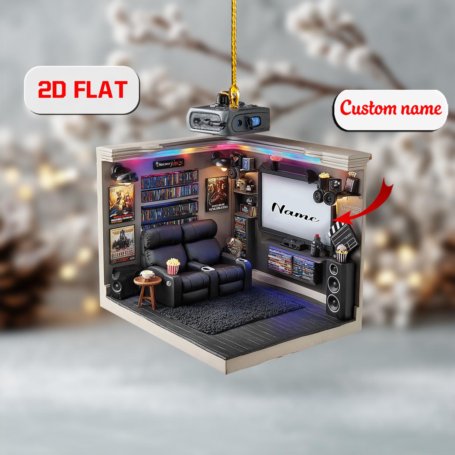 2D home theater acrylic ornament, personalized movie room Christmas decor, custom name ornament, holiday tree decoration, christmas gift