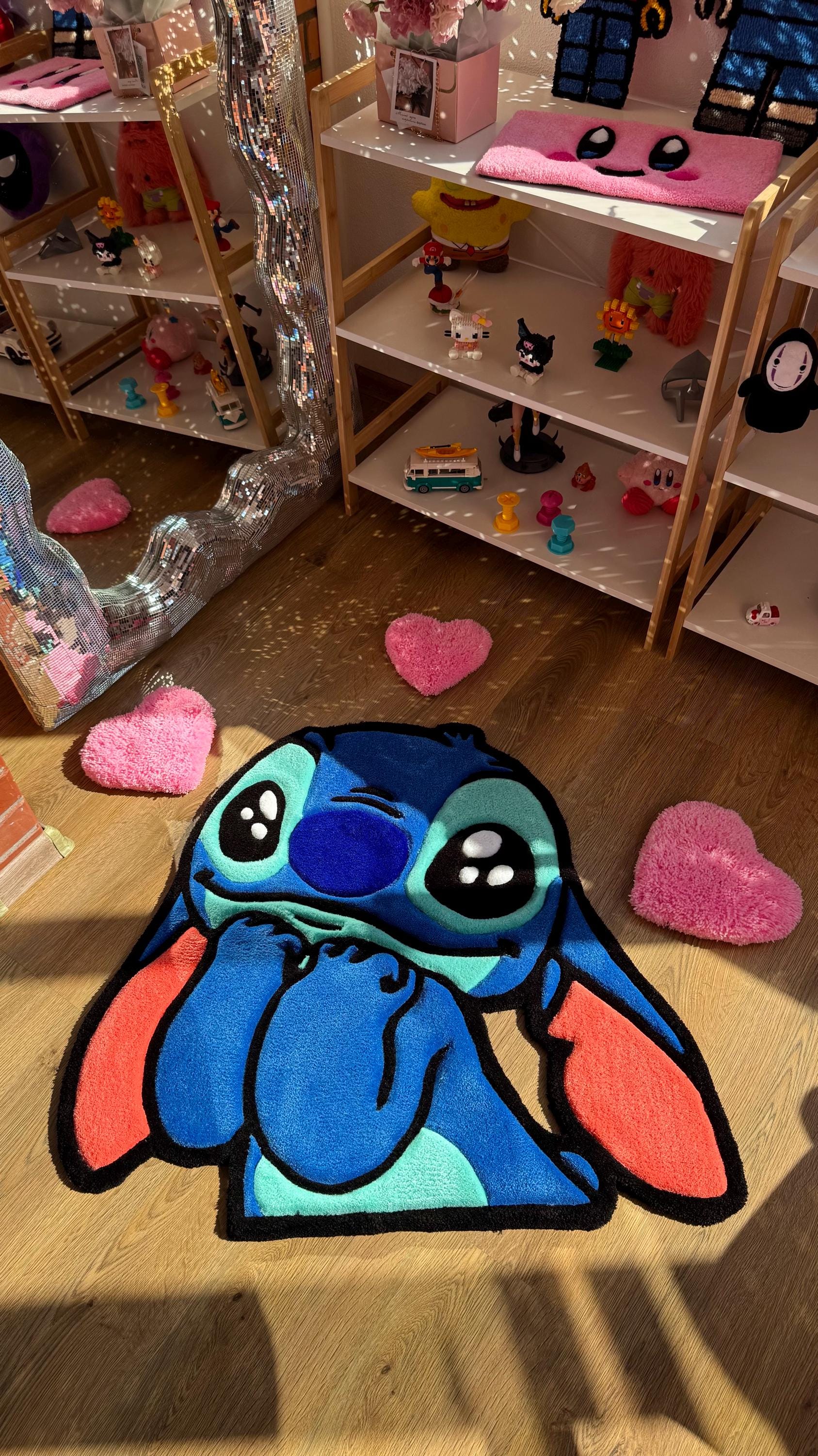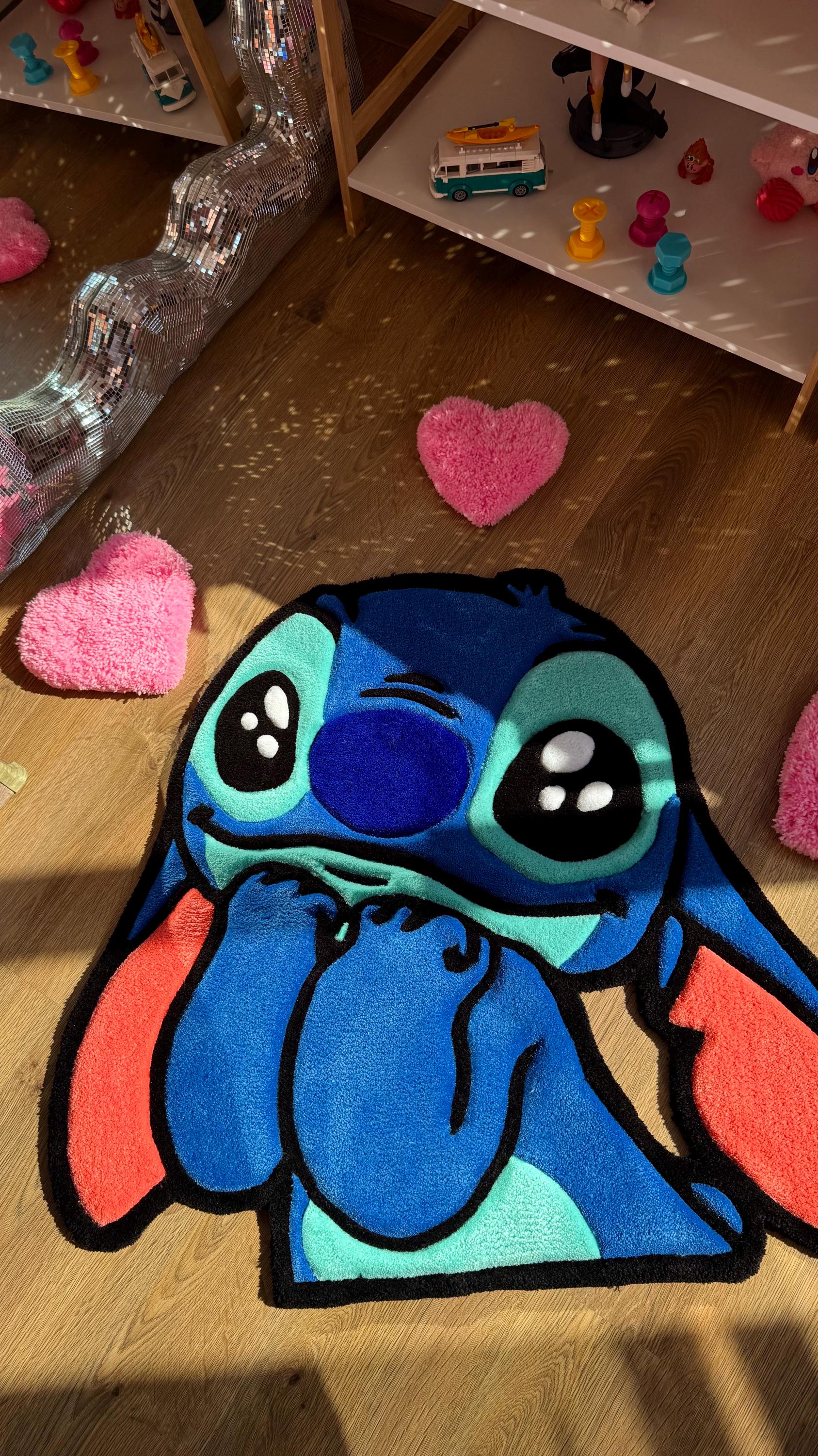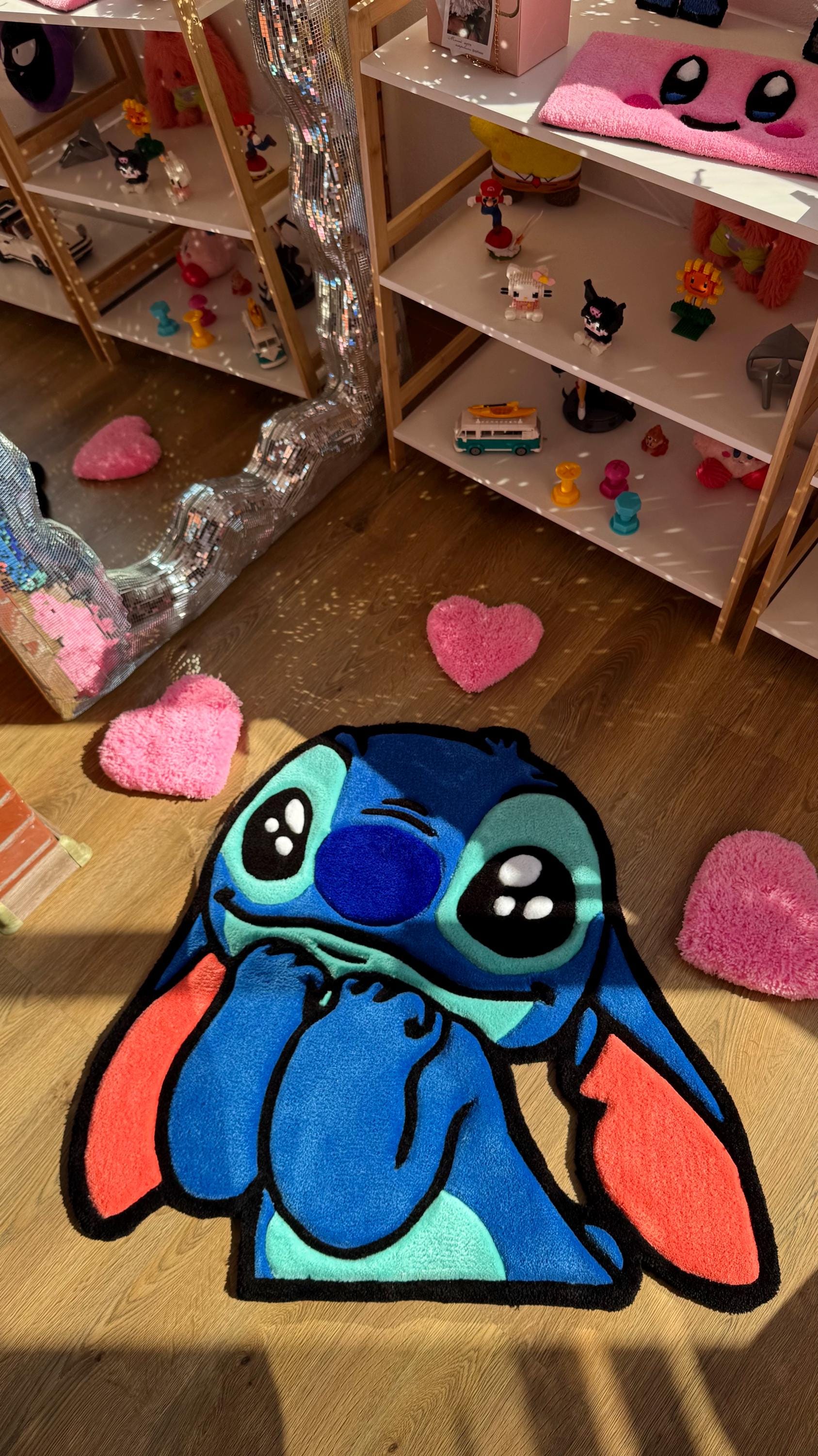 3 FT Stitch Tufted Rug – Custom Handmade Blue Cartoon Carpet, Crying Stitch Decor, Puffy Soft Rug for Anime Room Aesthetic or Gift