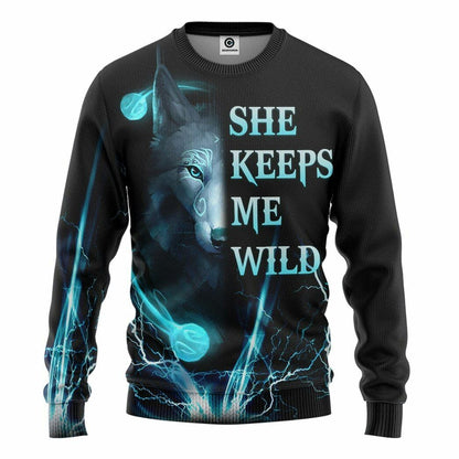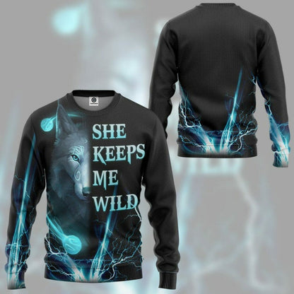 3D Wolf Blue She Keep Me Wild Custom Tshirt Hoodie Apparel