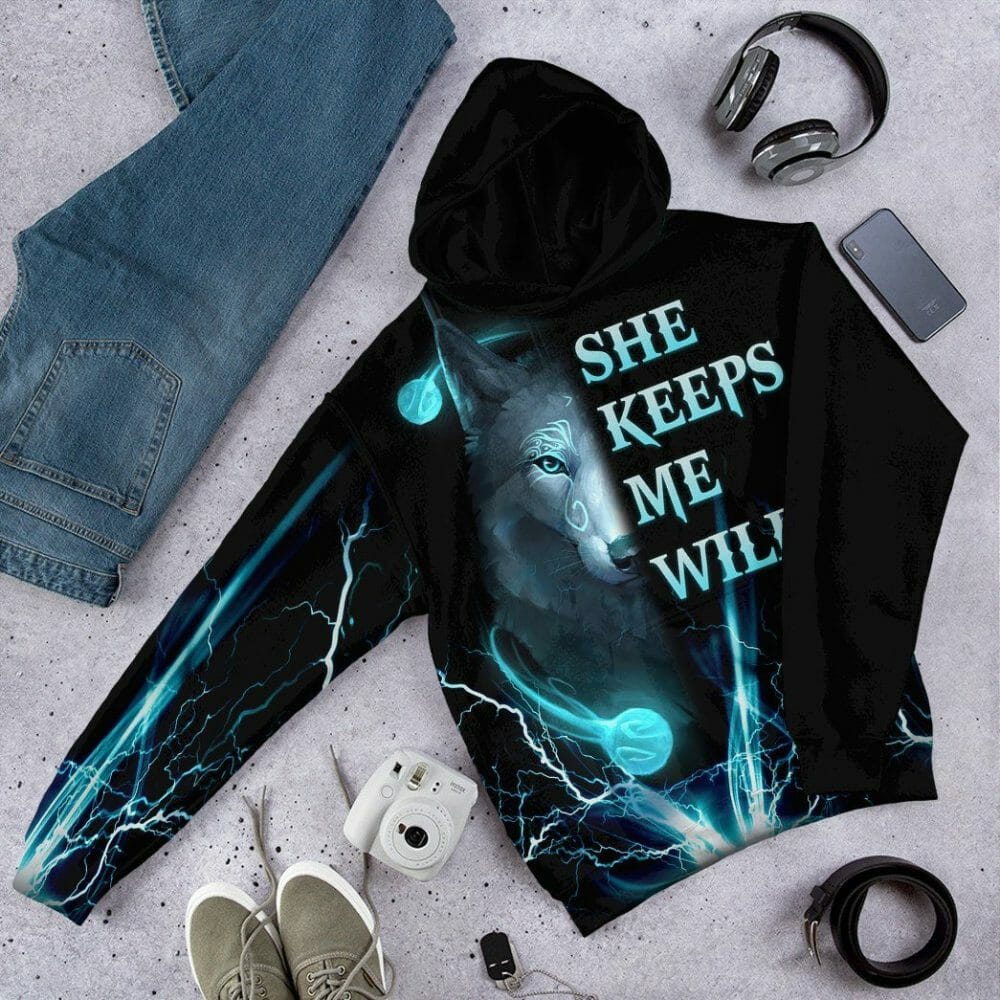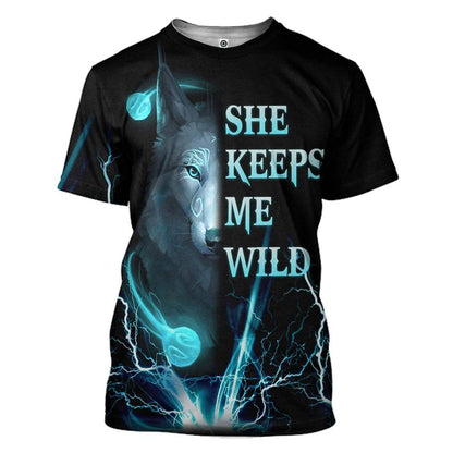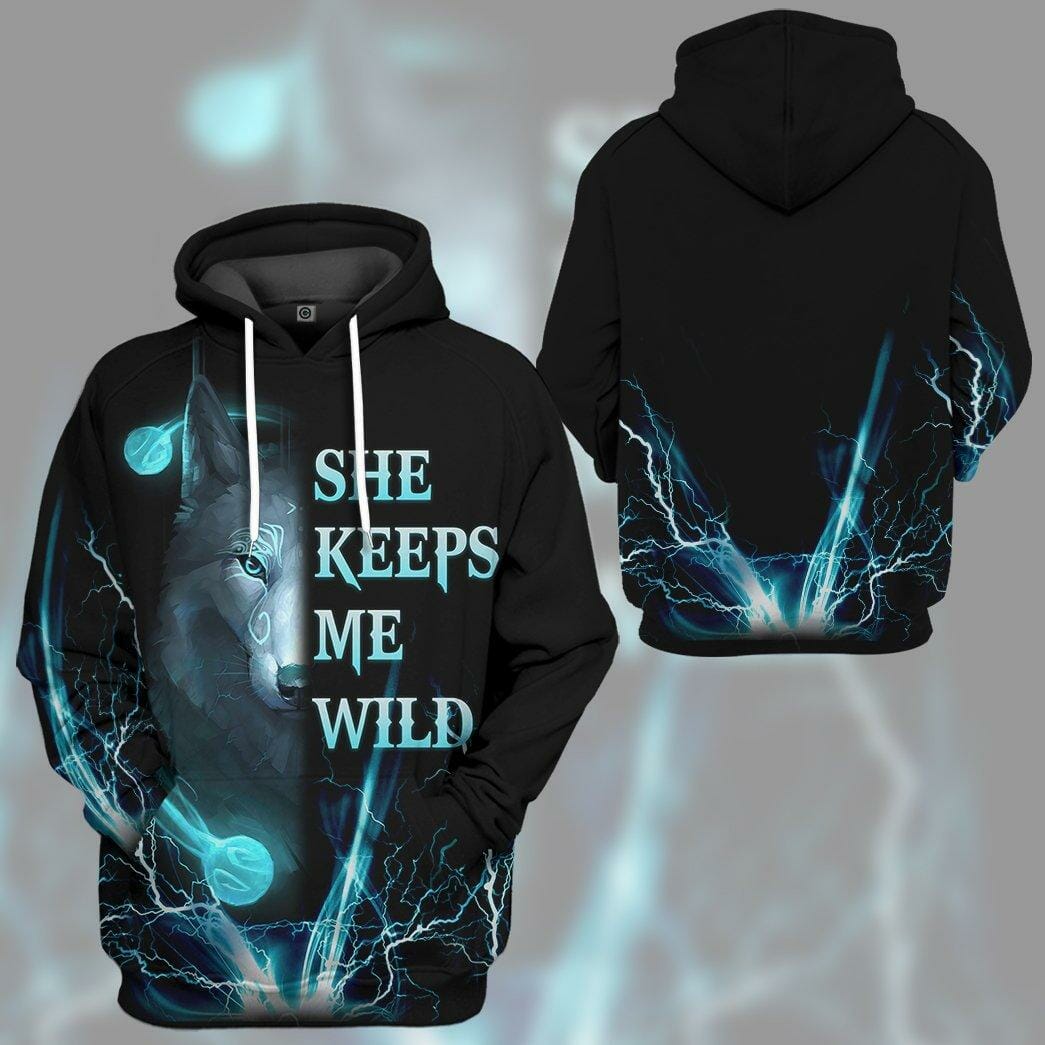 3D Wolf Blue She Keep Me Wild Custom Tshirt Hoodie Apparel. is your one stop source for high-quality t-shirts, sweatshirts, hoodies, and more! We have over 5,000 designs to choose from, including fan favorites like The Avengers, Star Wars, and more. Shop now while supplies last!