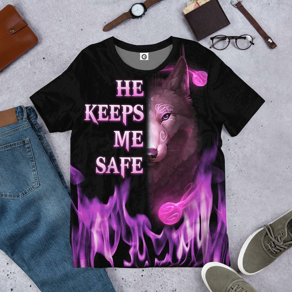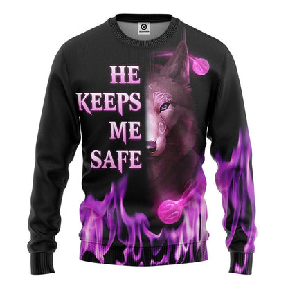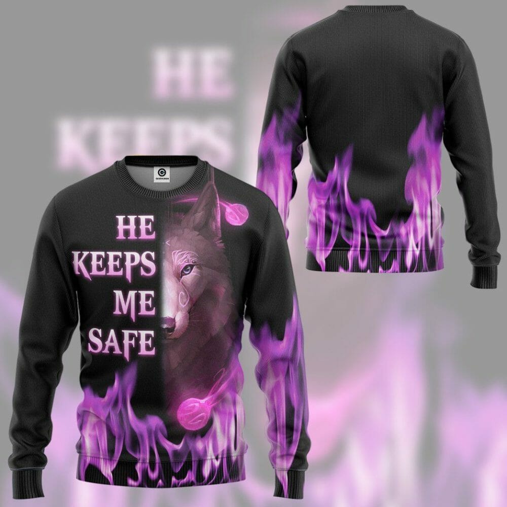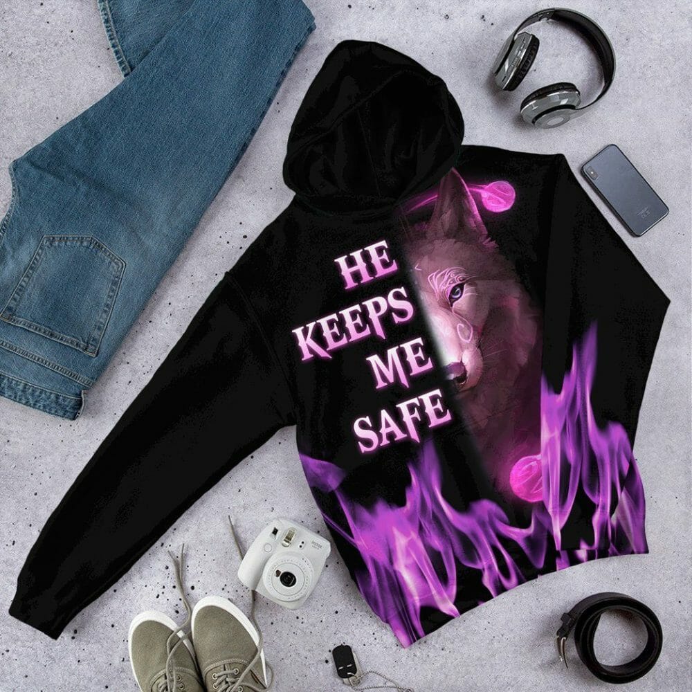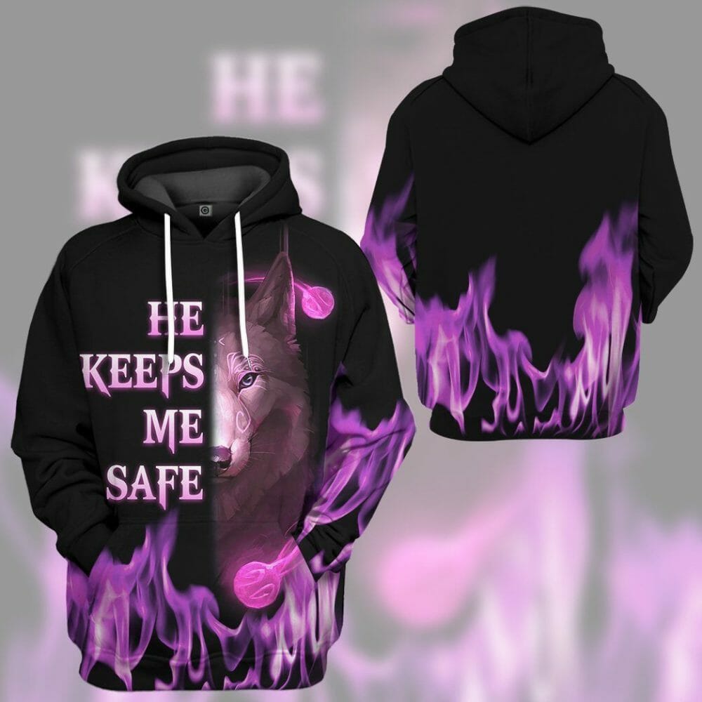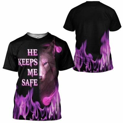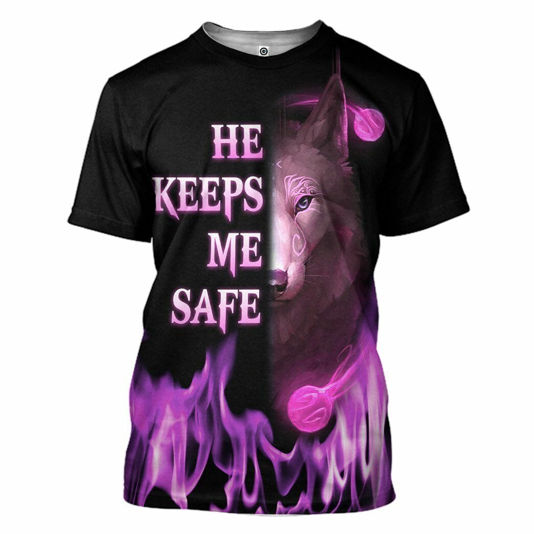 3D Wolf Pink He Keep Me Safe Custom Tshirt Hoodie Apparel