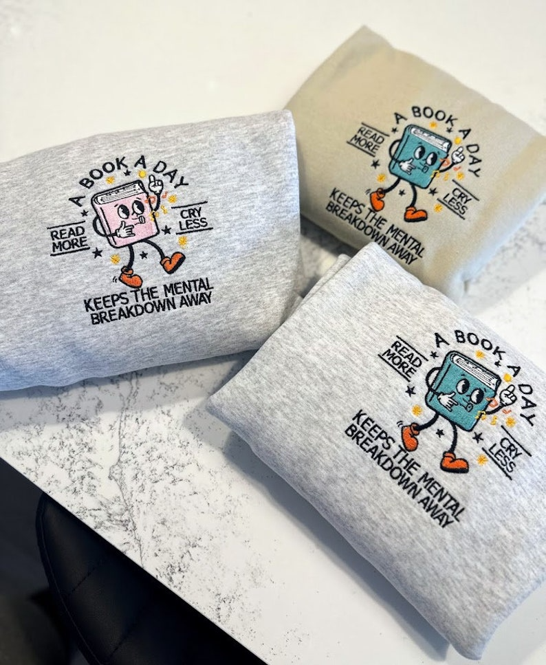 A Book A Day Embroidered Sweatshirt, Mental Health Sweater, Book Lover Gift, Bookish, Bookworm Gift, Reading Shirt, Book Club Shirts