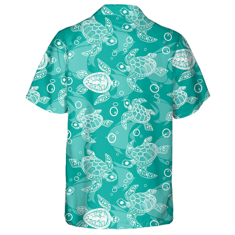 Abstract White Turtle Fish And Bubbles Hawaiian Shirt, Hawaiian For Gift