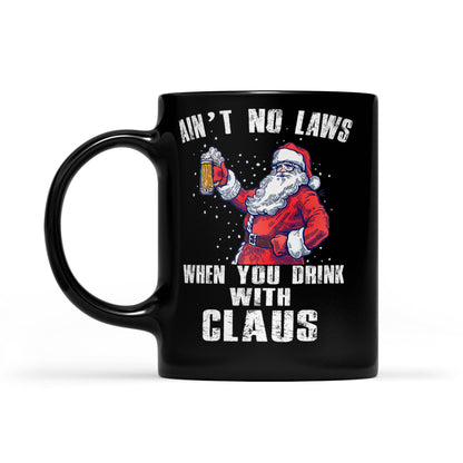 Ain't No Laws When You Drink With Claus Funny Christmas Beer Black Mug Gift For Christmas