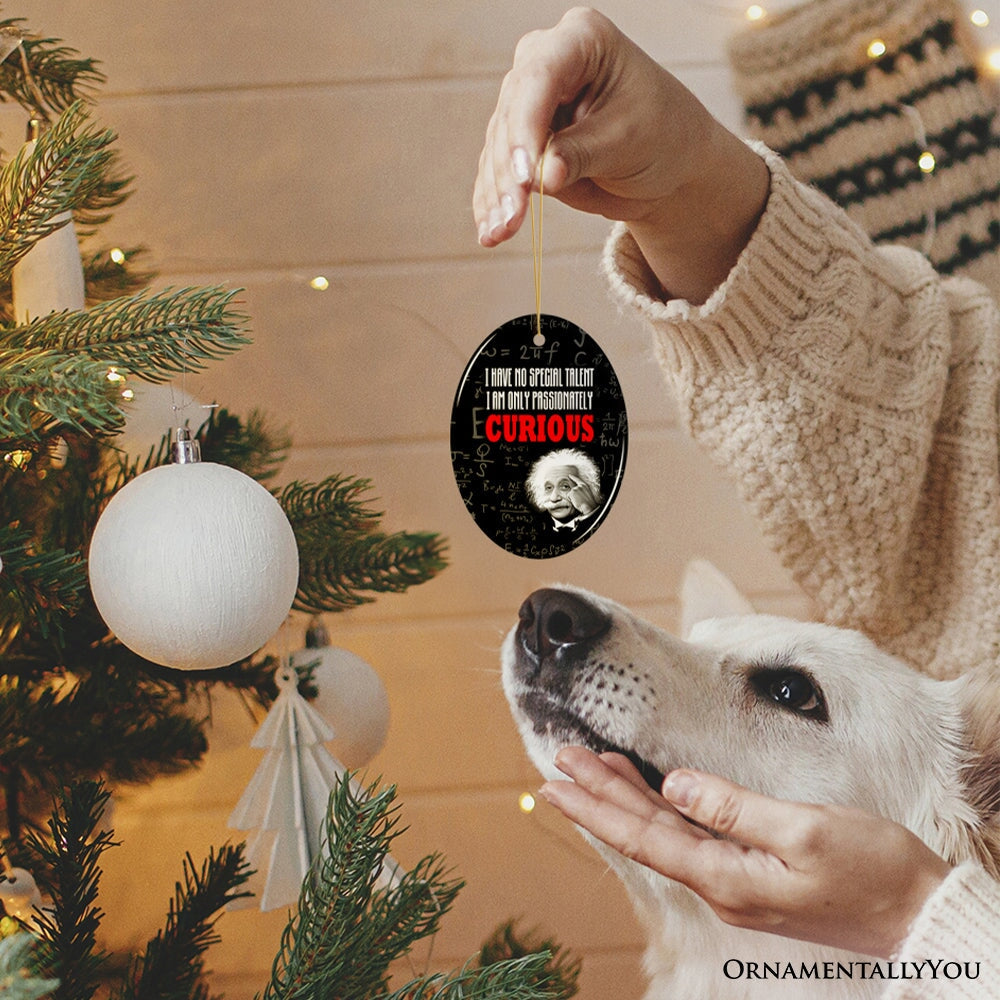Albert Einstein Thought Provoking Quote Passionately Curious, Ceramic Ornament Gift and Decor
