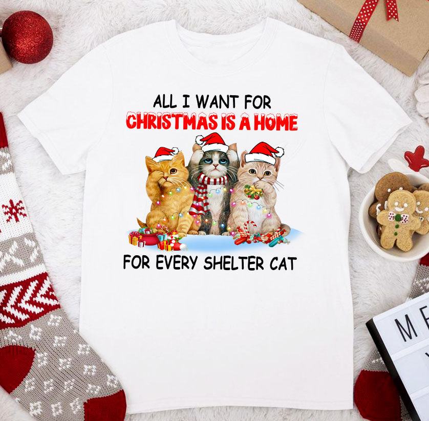 All I Want For Christmas Is A Home For Every Shelter Cat T-shirt, Christmas Family Gift Idea For Cat Lover