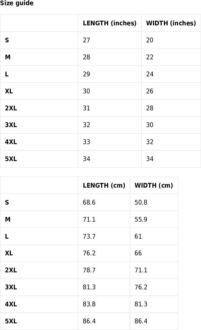 | 5XL | 34 | 86.4 | 34.00 | 86.4 | 40 | 101.6 |