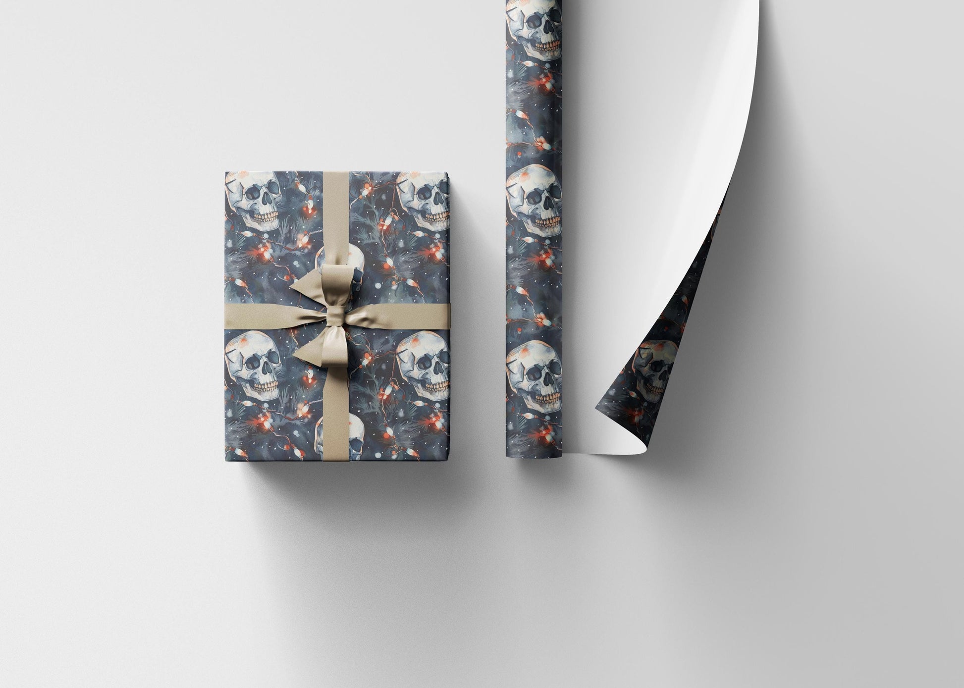 Alternative Gothic Christmas Wrapping Paper Roll, Skulls and Snow Design for Gothmas Packaging #17