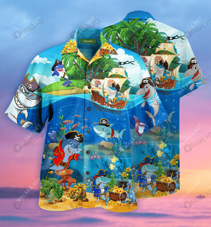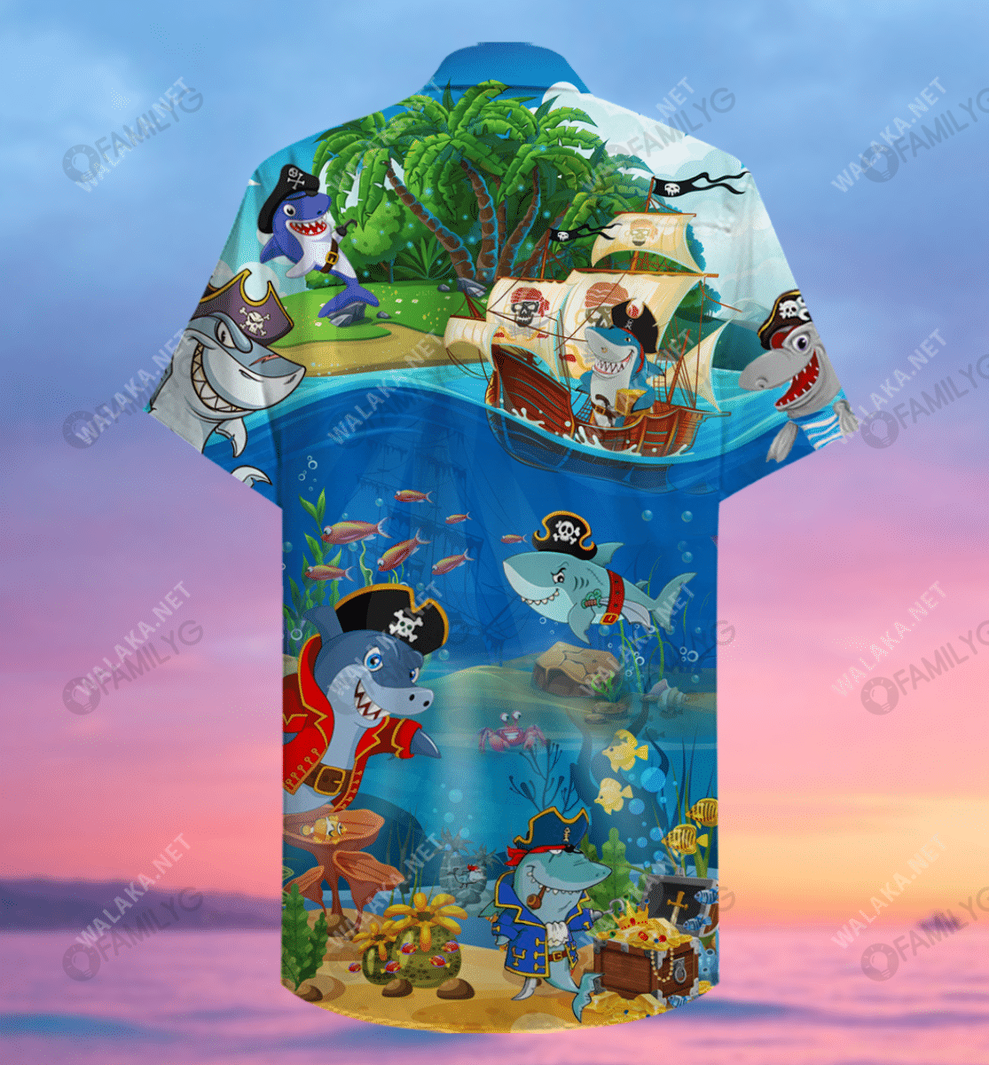 Amazing Pirate Sharks Unisex Hawaiian Shirt, Hawaiian Shirt Gift, Christmas Gift