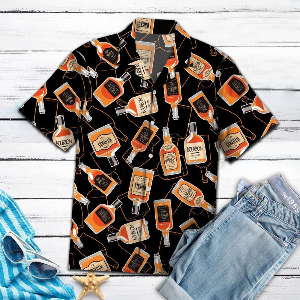 Amazing Whisky Bottle On Black Background Design Themed Hawaiian Shirt, Hawaiian Shirt Gift, Christmas Gift