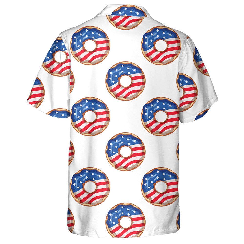 American Flag Donuts On White Background Hawaiian Shirt, Hawaiian For Gift