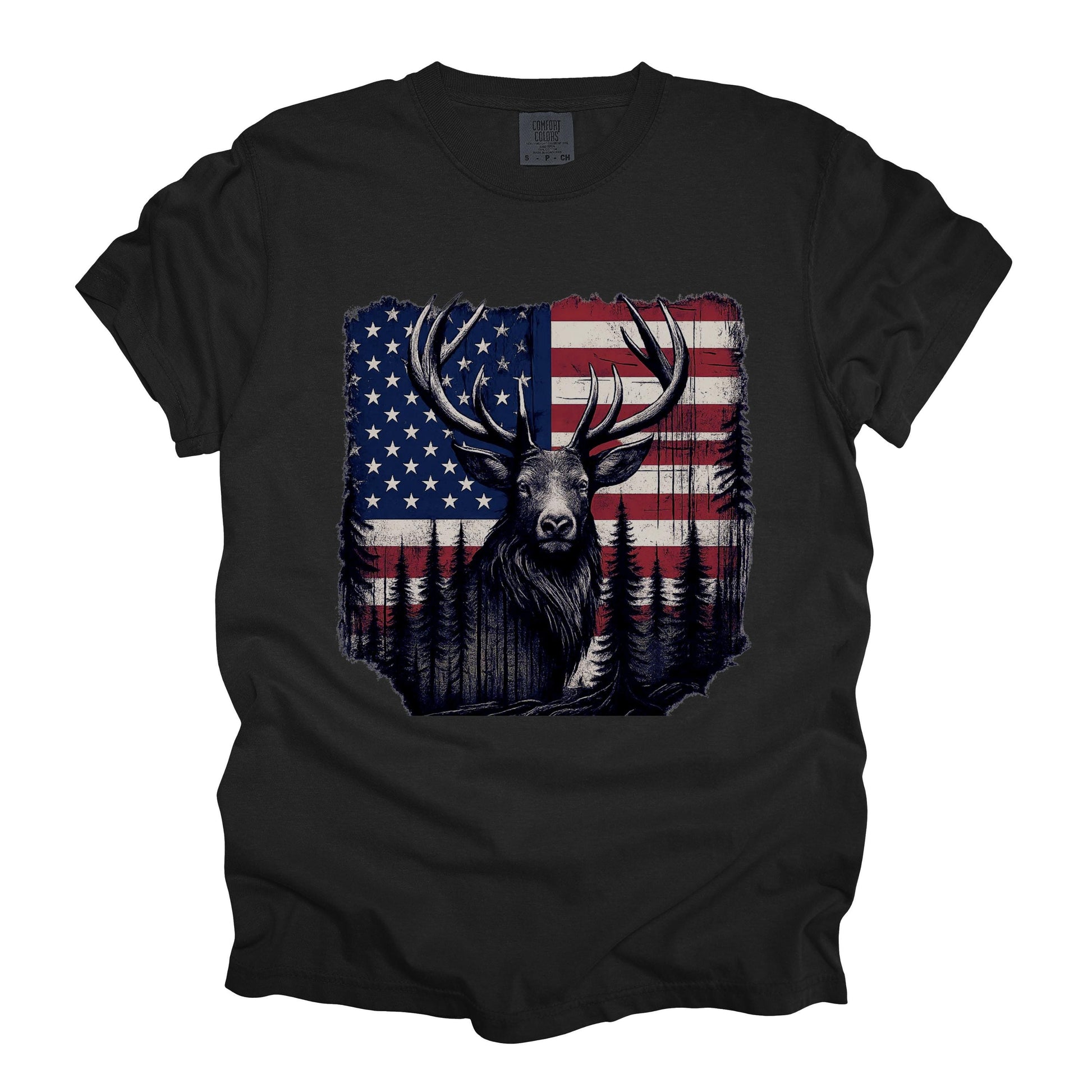 American Flag Elk Hunting Shirt: Comfort Colors Tee