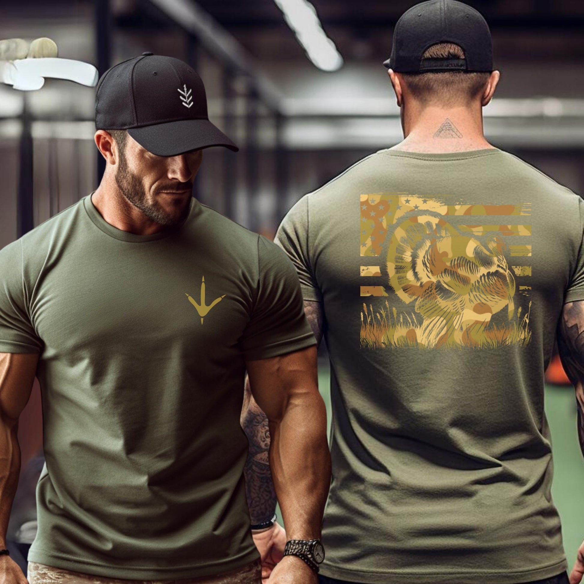 American Flag Turkey Hunter Shirt: Patriotic Hunting Season Tee